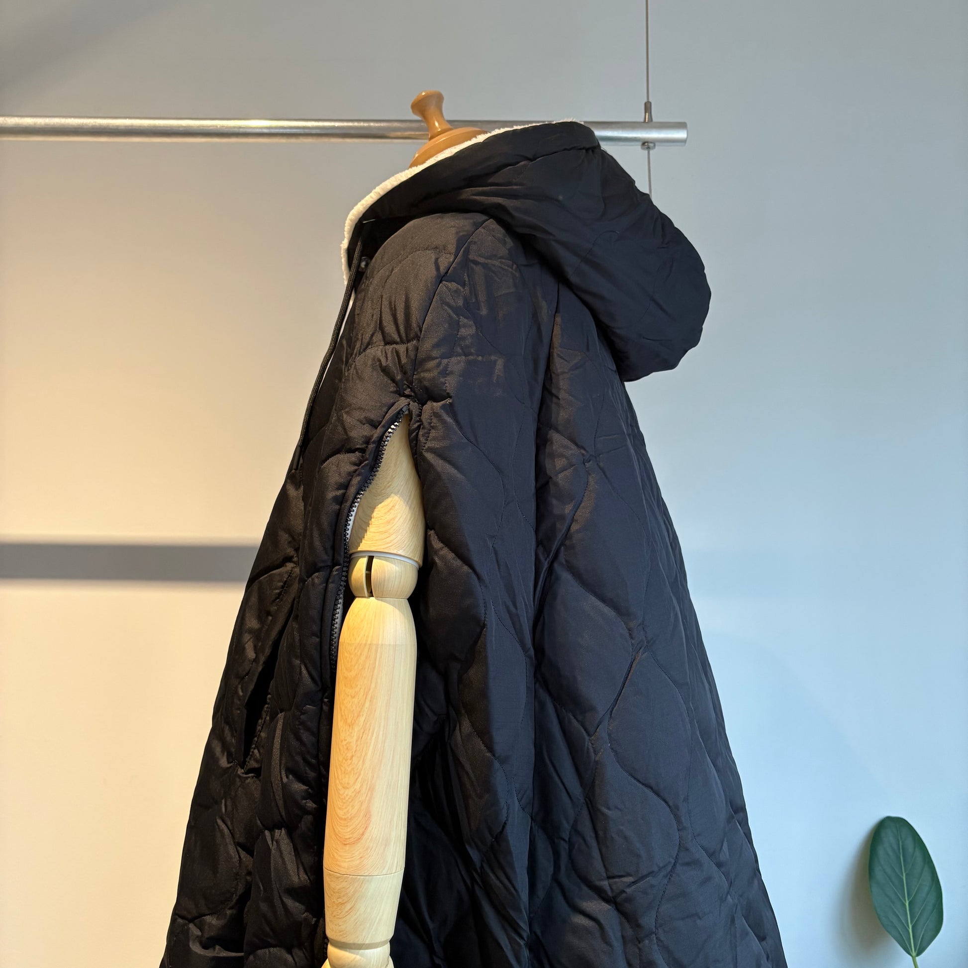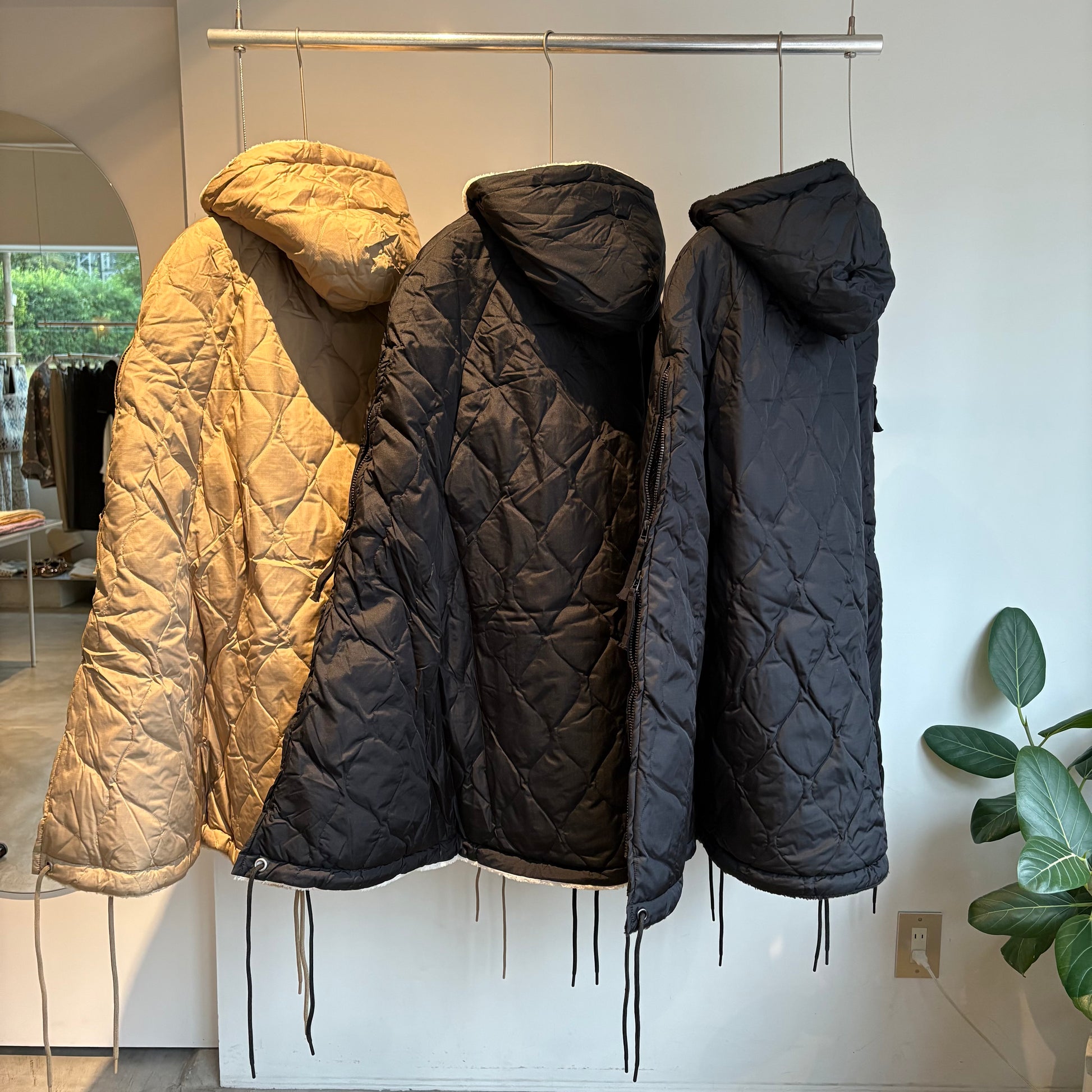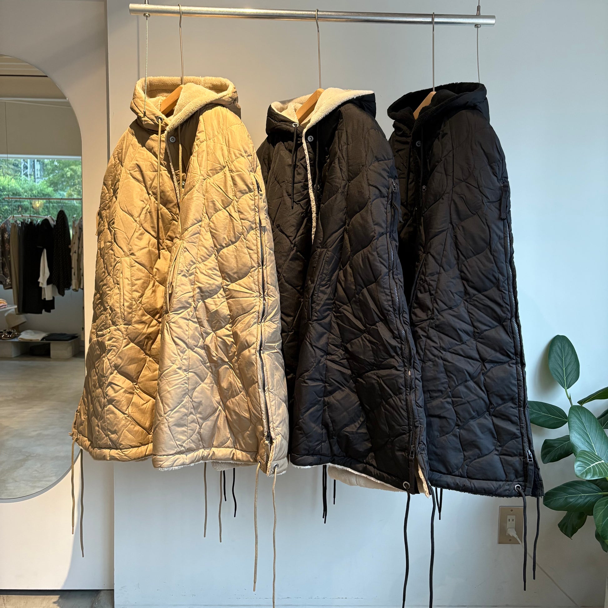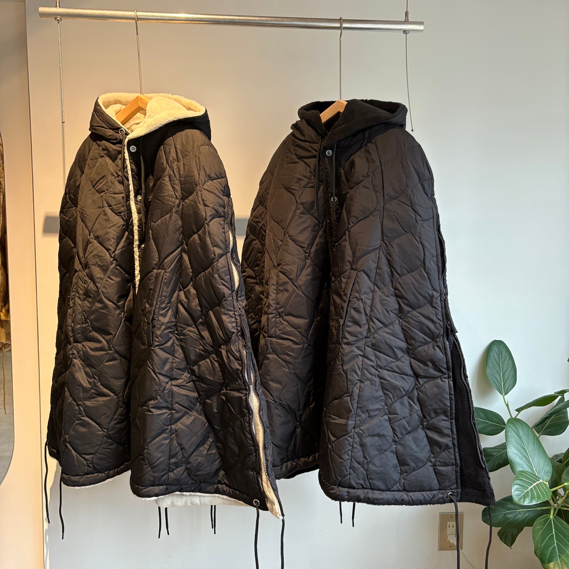 ダウン×ボアの2重構造、ボリューム感が魅力的なミリタリーダウンポンチョです。