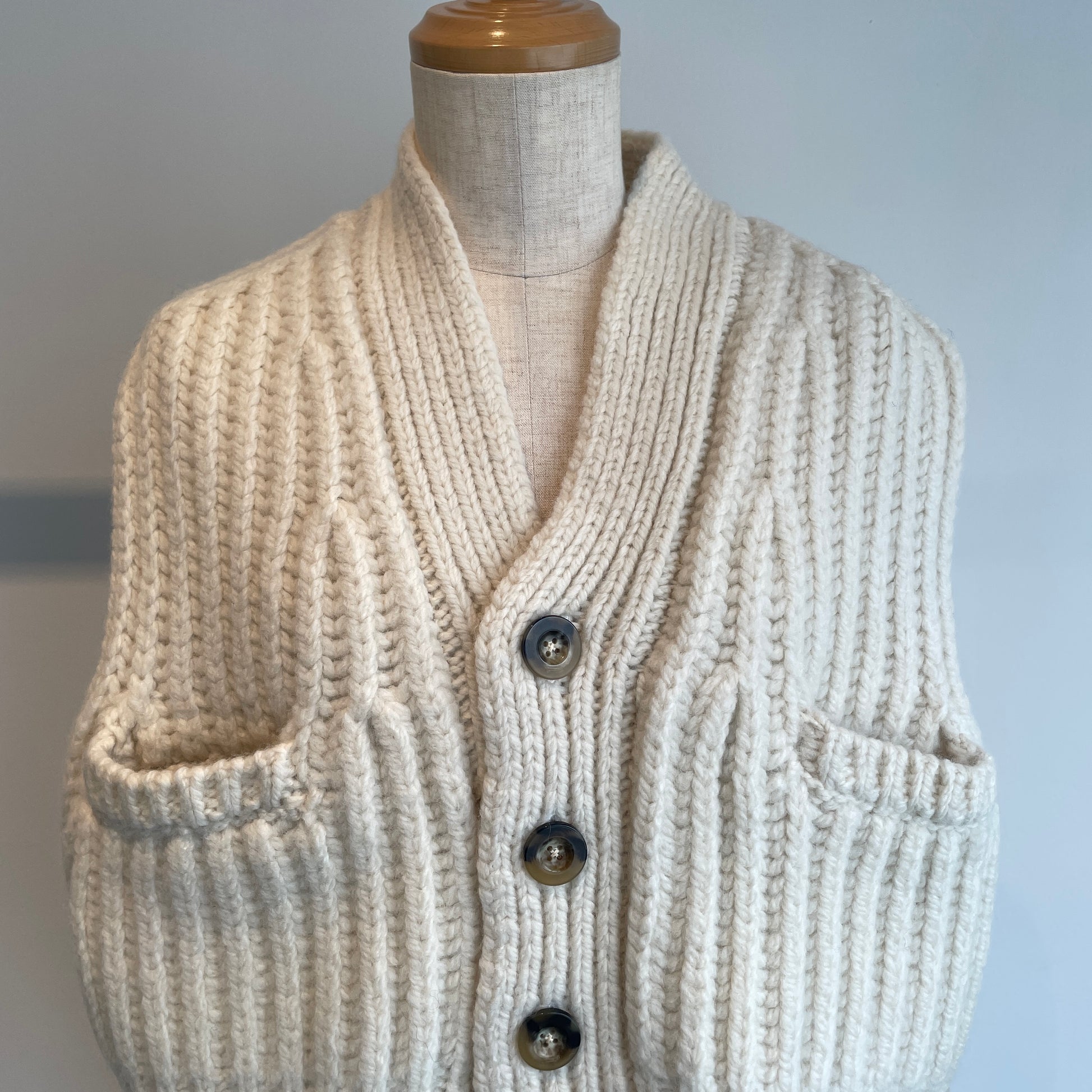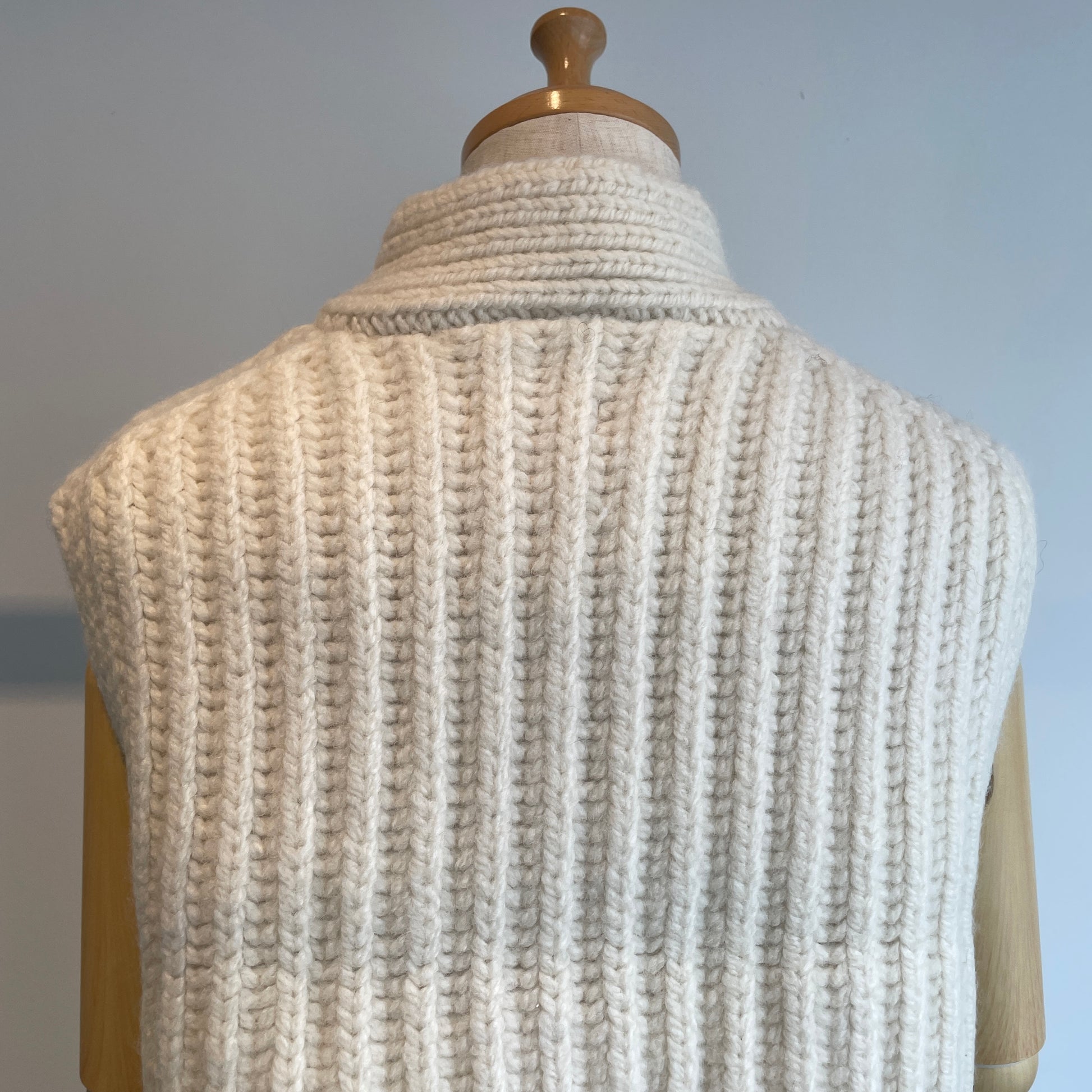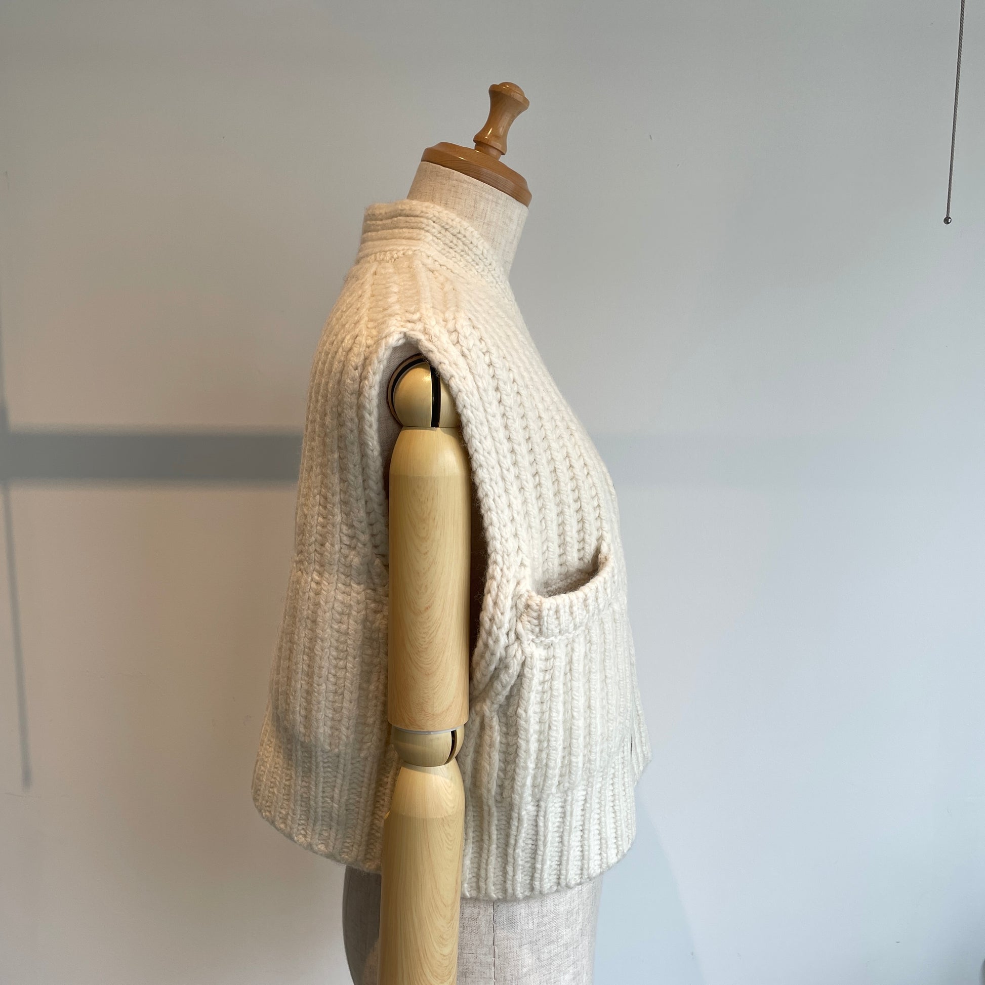 染めない、羊の暖かみそのものを感じるナチュラルな糸に惹かれるニットベストです。