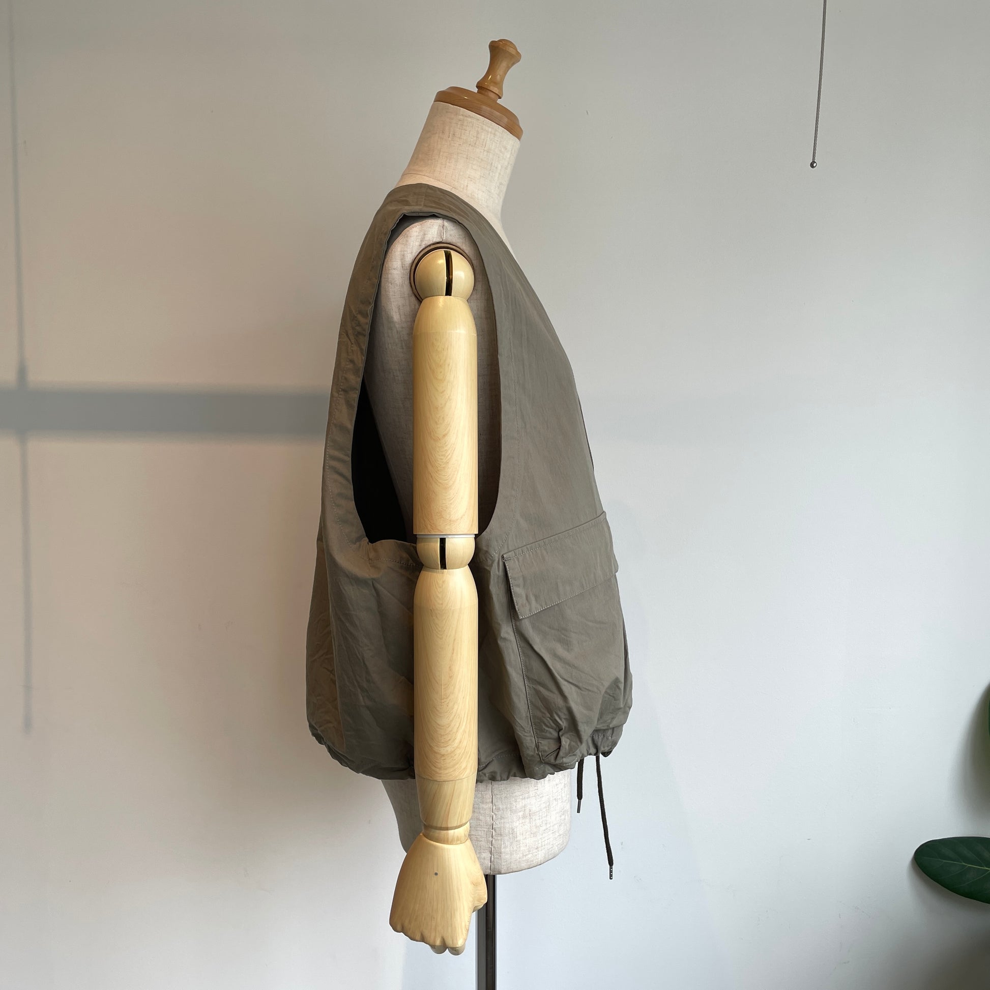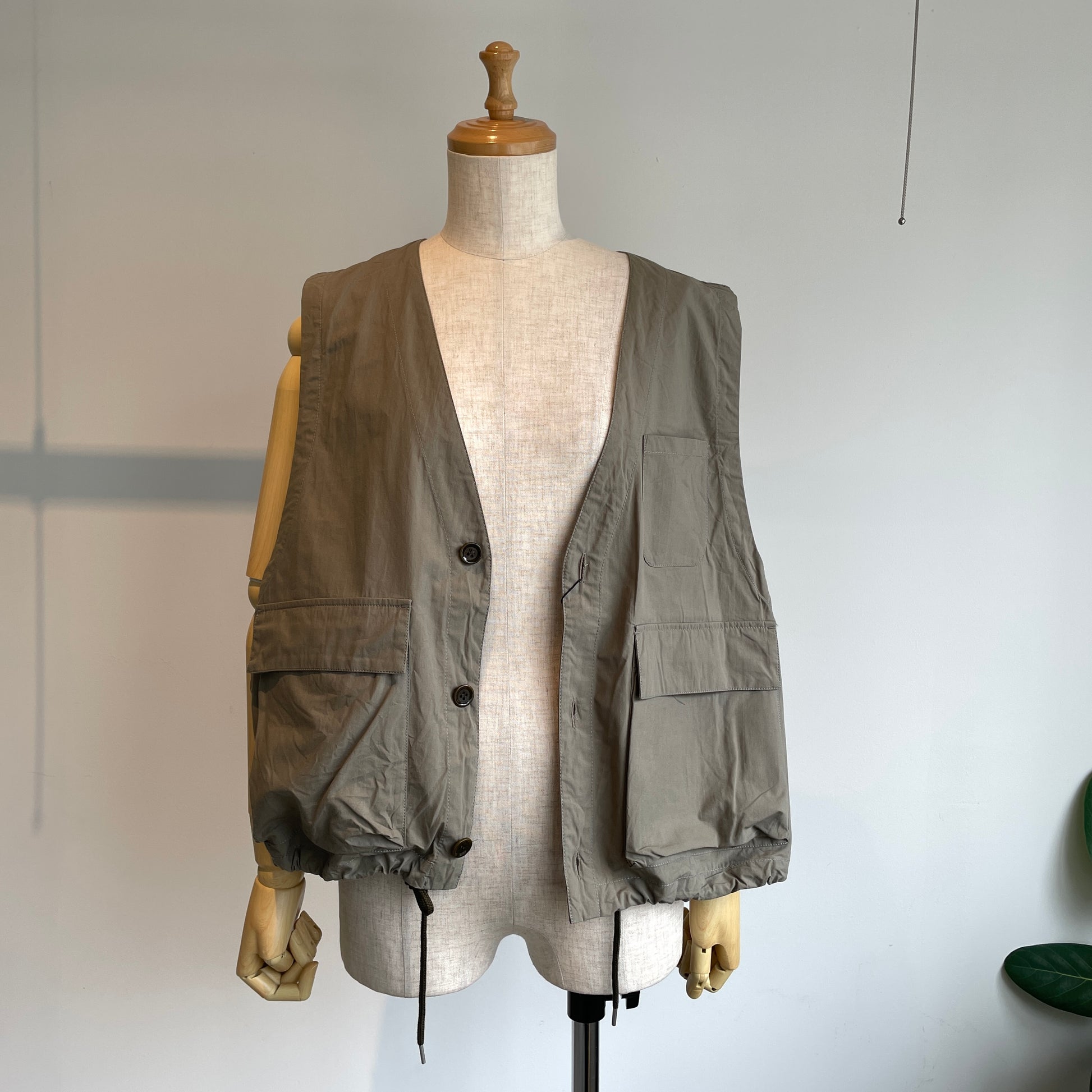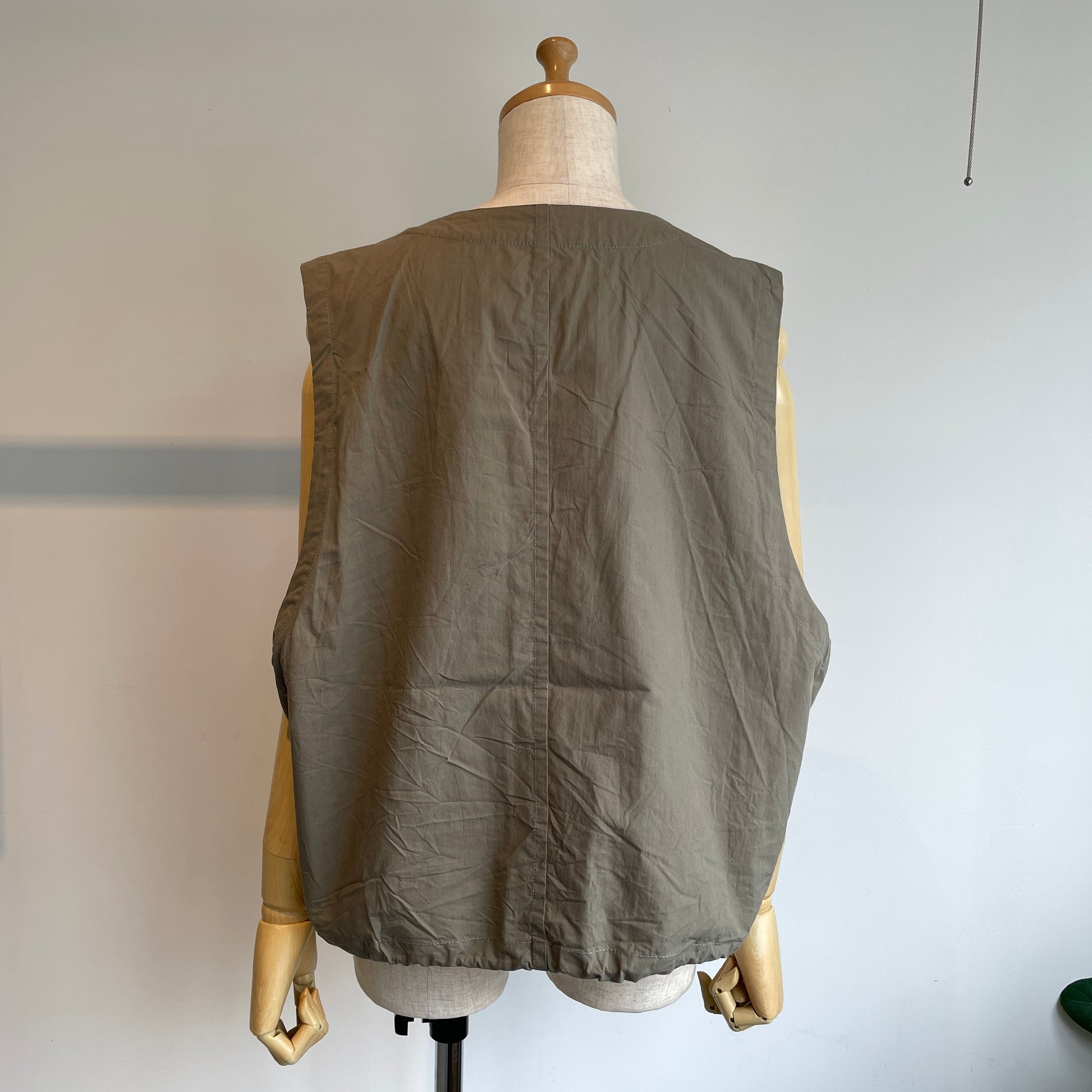 アウターの上に重ねたり、ニットやスエットの上に重ねたり、脇がゆったりしているので重ね着がしやすいアイテム。