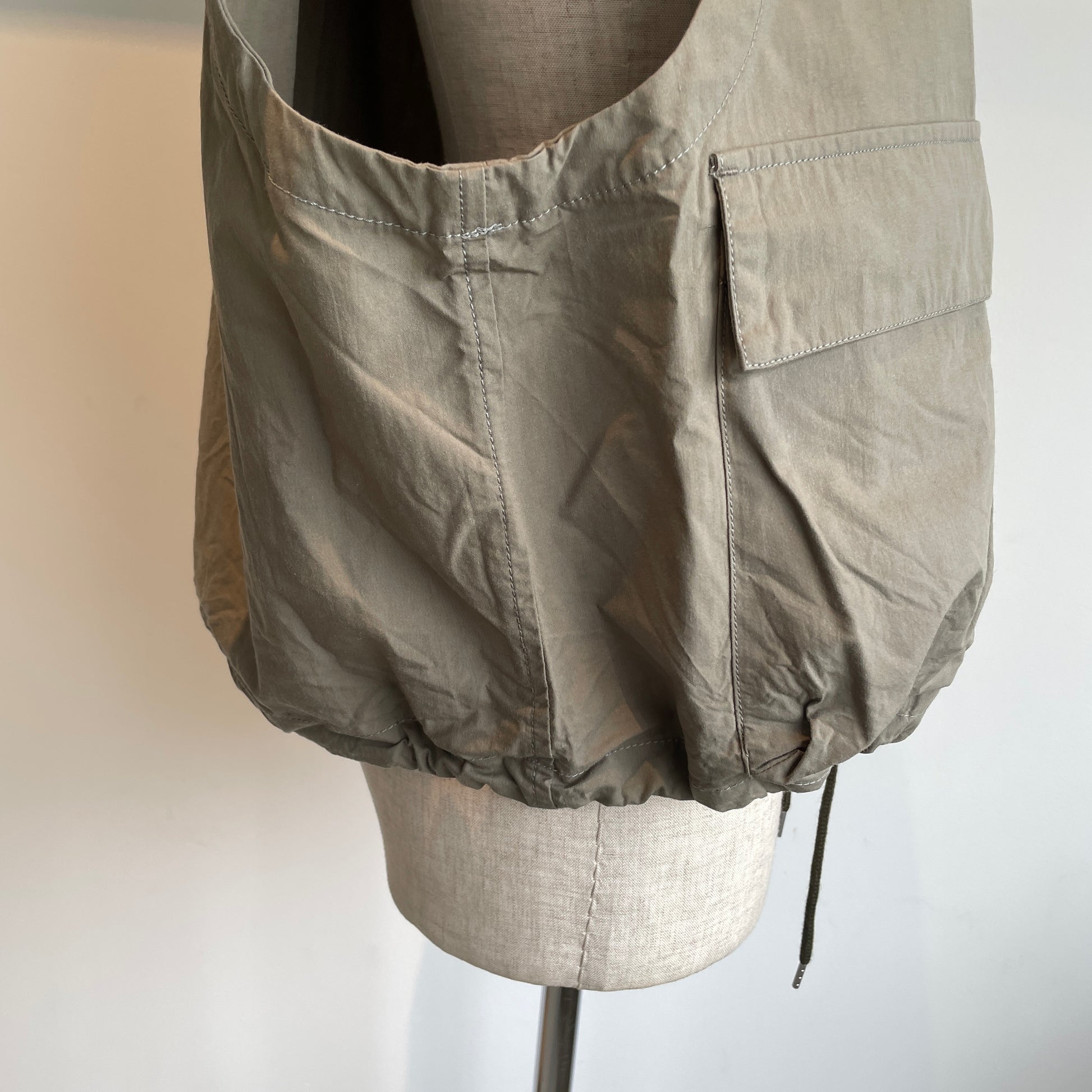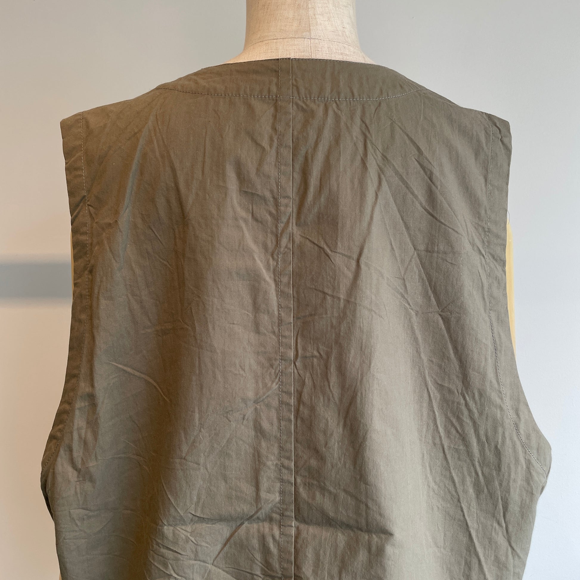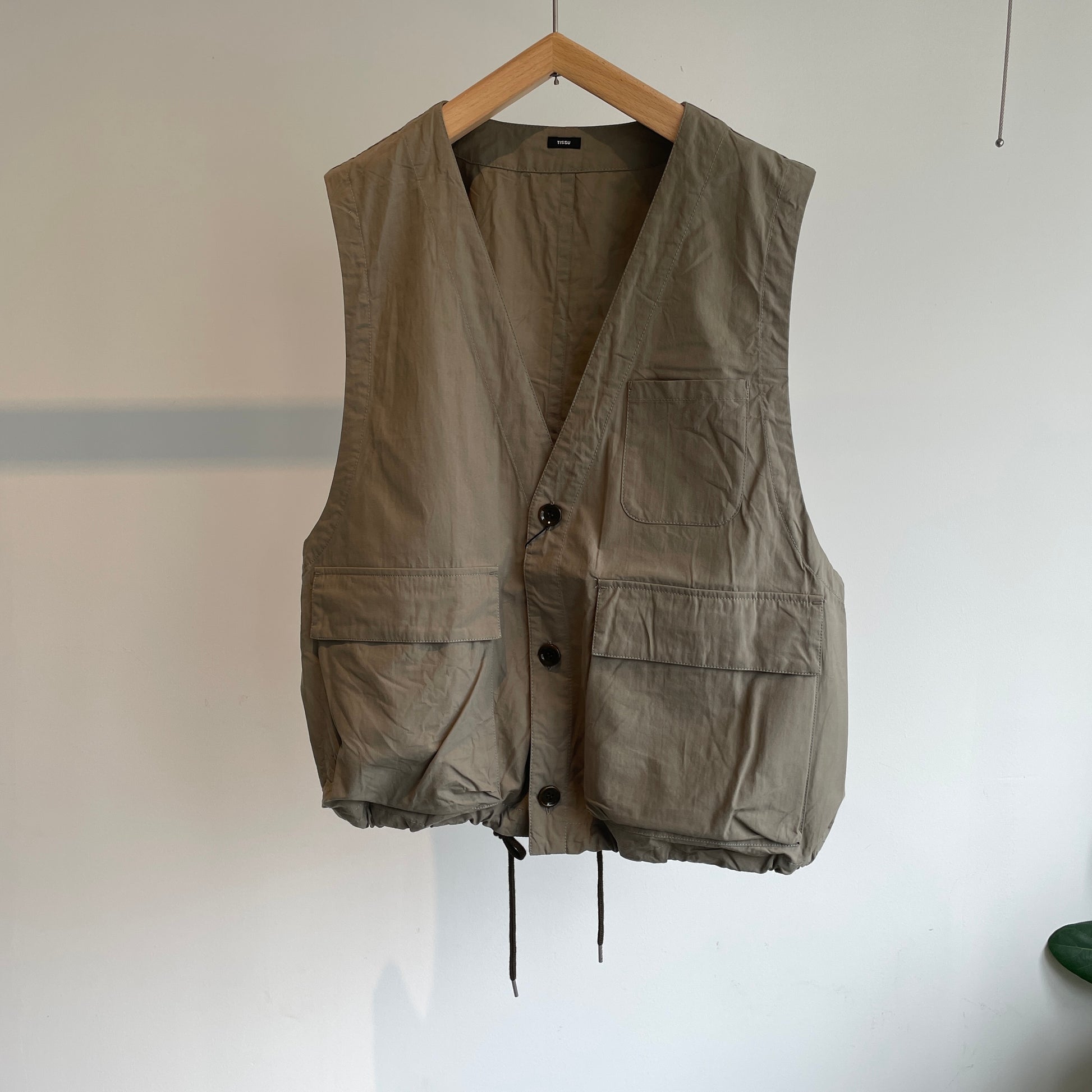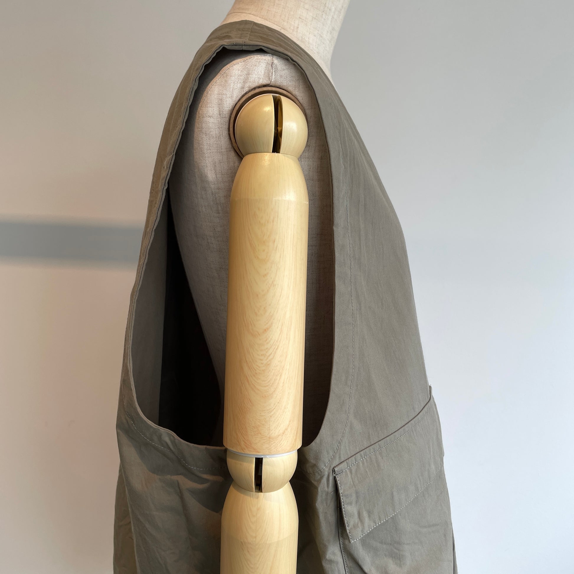 アウターの上に重ねたり、ニットやスエットの上に重ねたり、脇がゆったりしているので重ね着がしやすいアイテム。