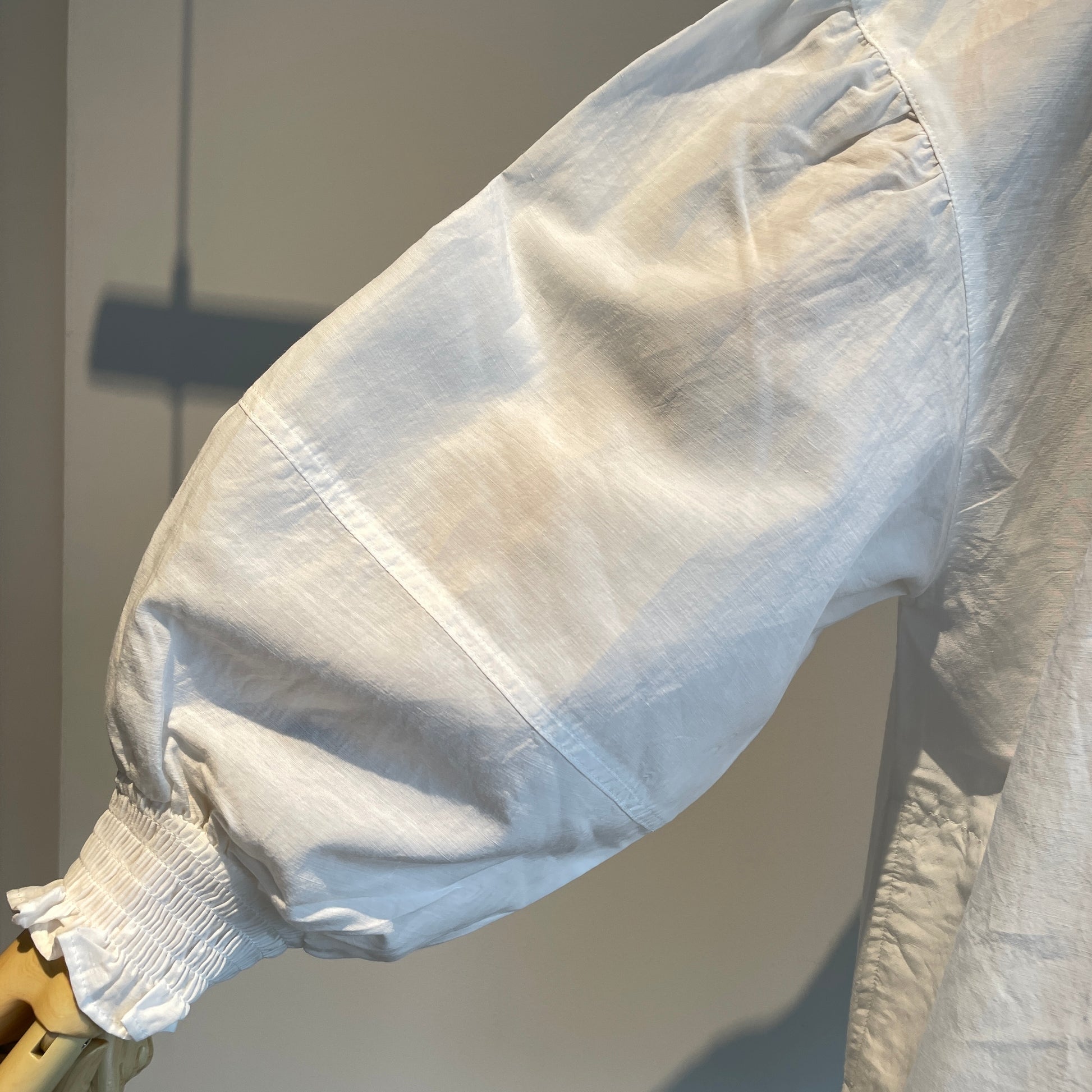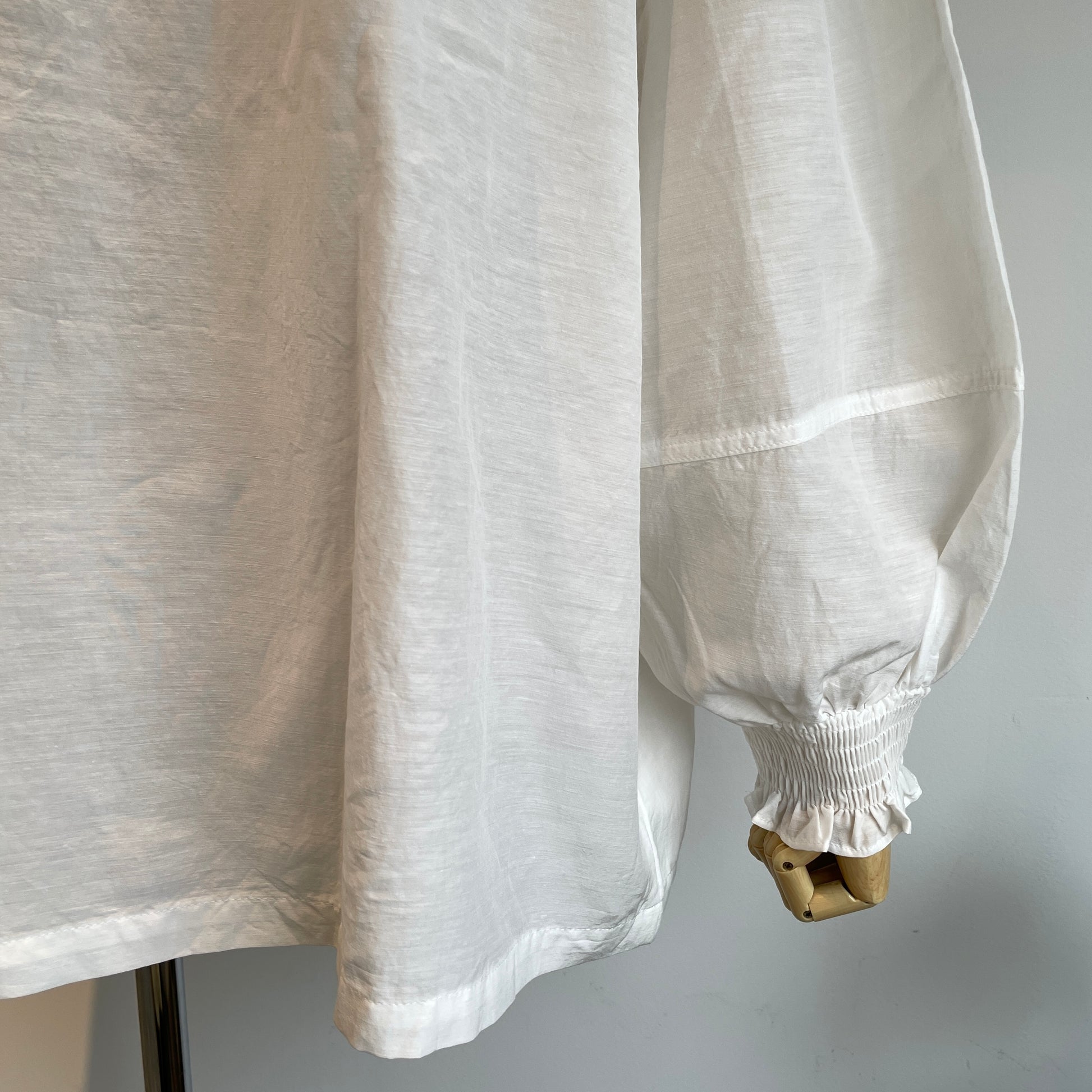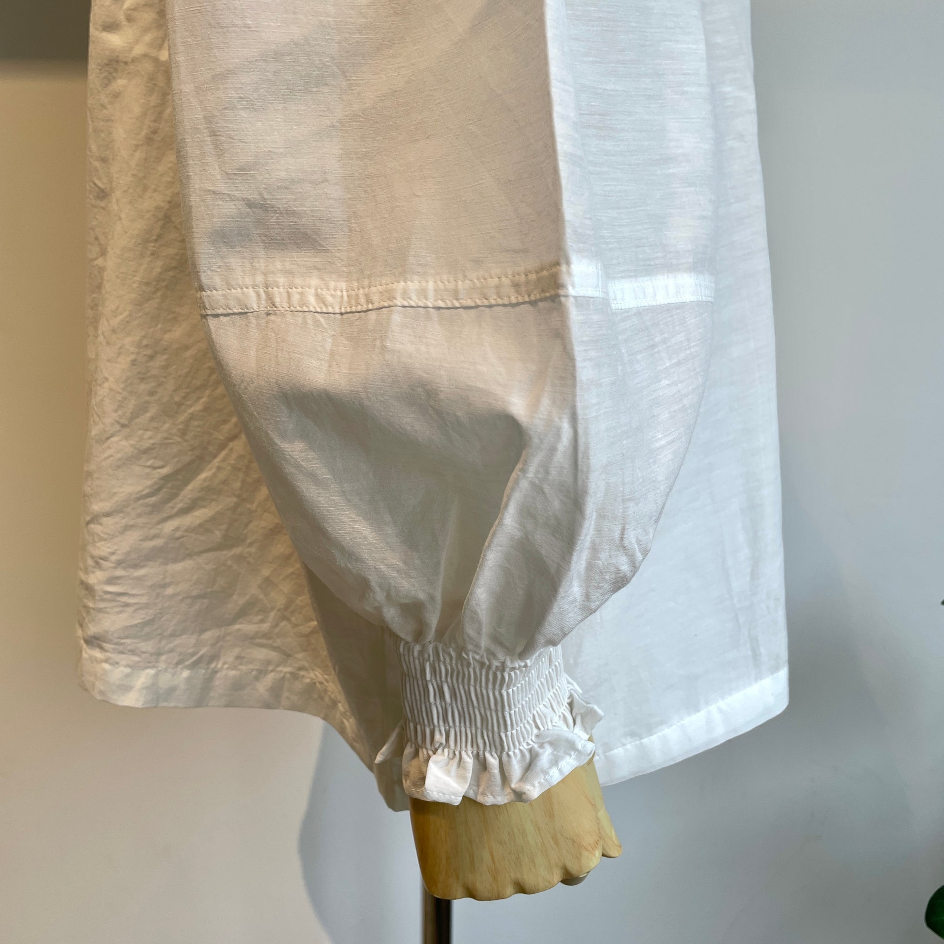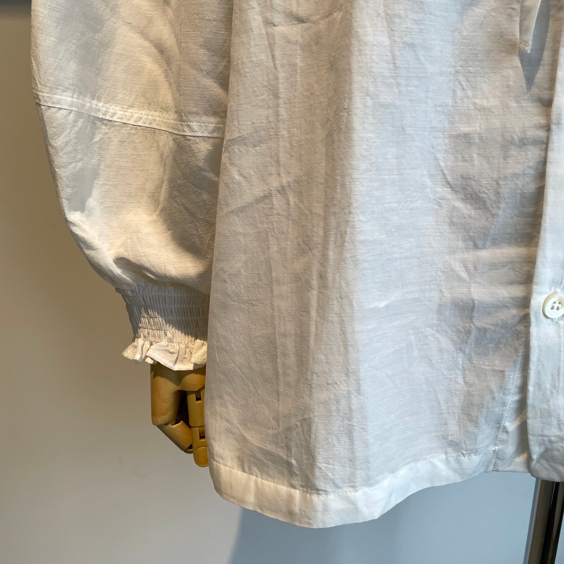お袖のシャーリングは立体感が出せて、首元のリボンはしめかたで印象を変えて頂けます。