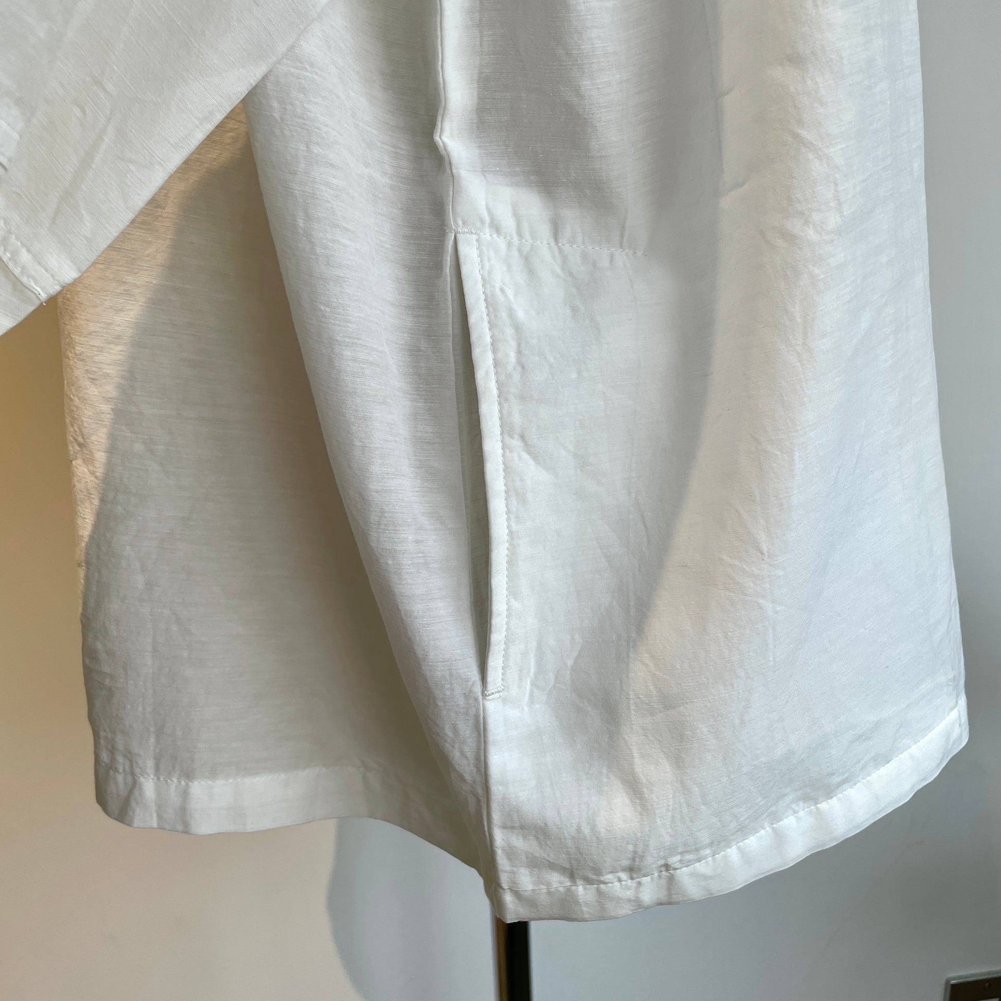 経糸にキュプラ、緯糸に綿麻で織った平織りにトリプルワッシャー加工を施した新素材です。