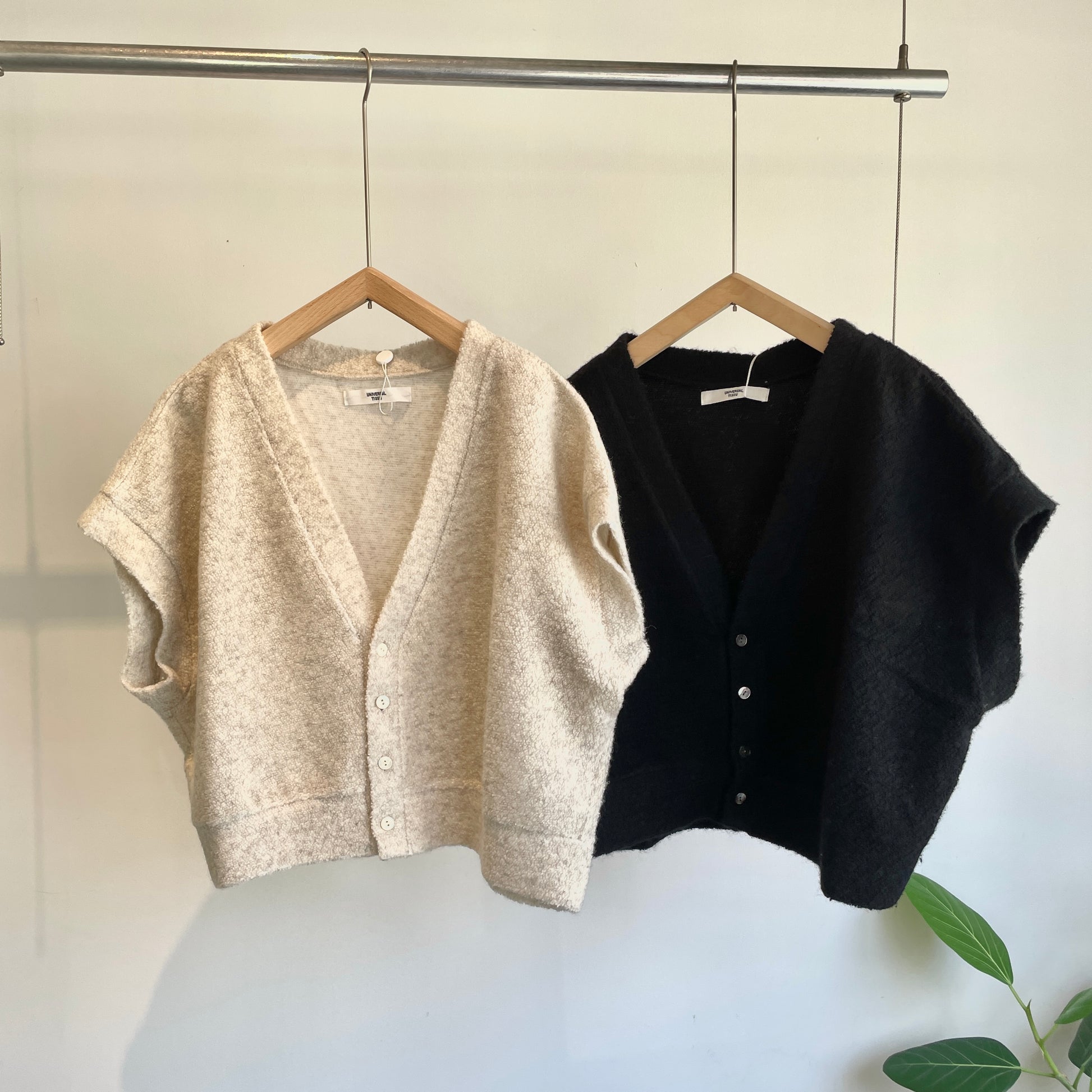 素材感の可愛い、開けてもしめてもバランスの取りやすいベストです。
