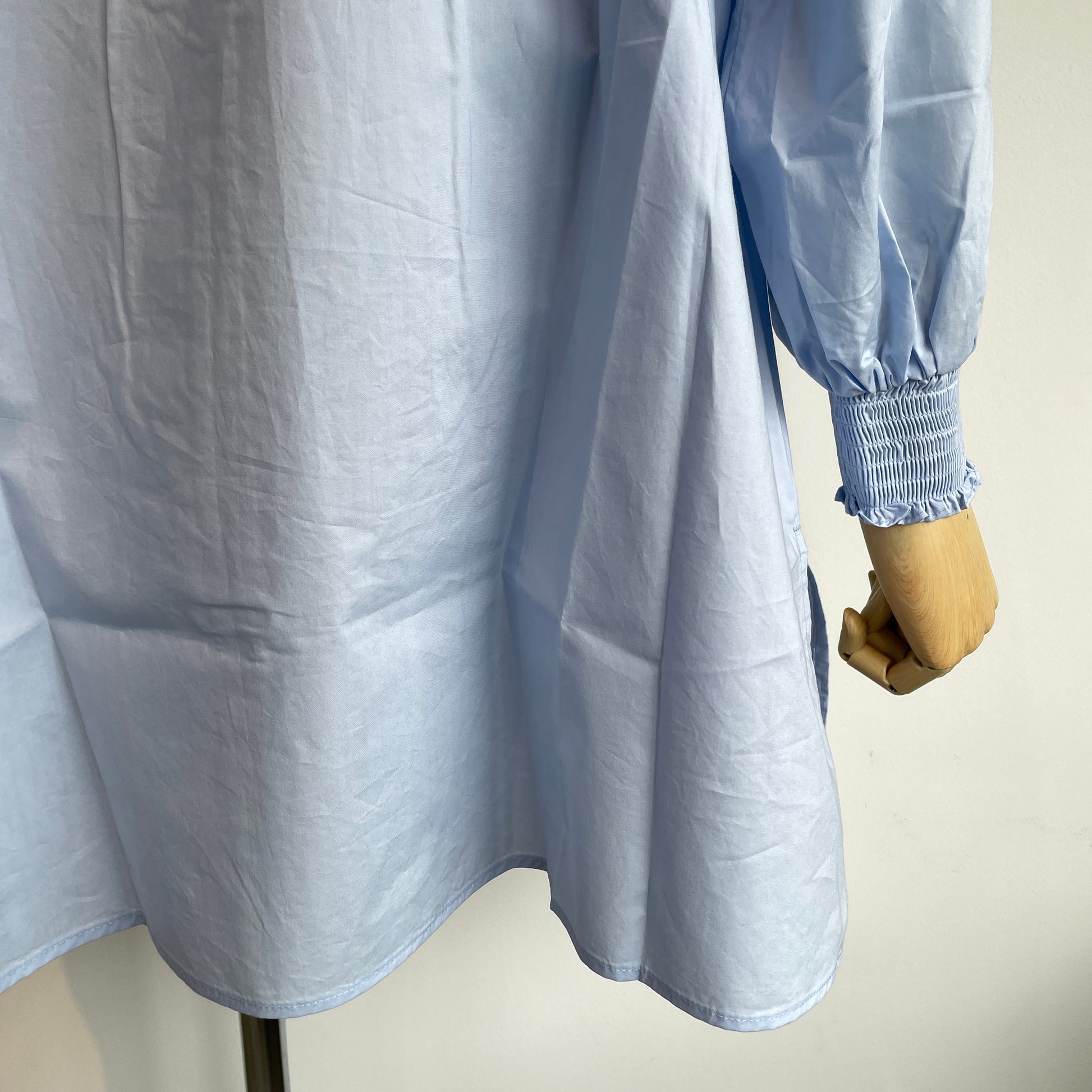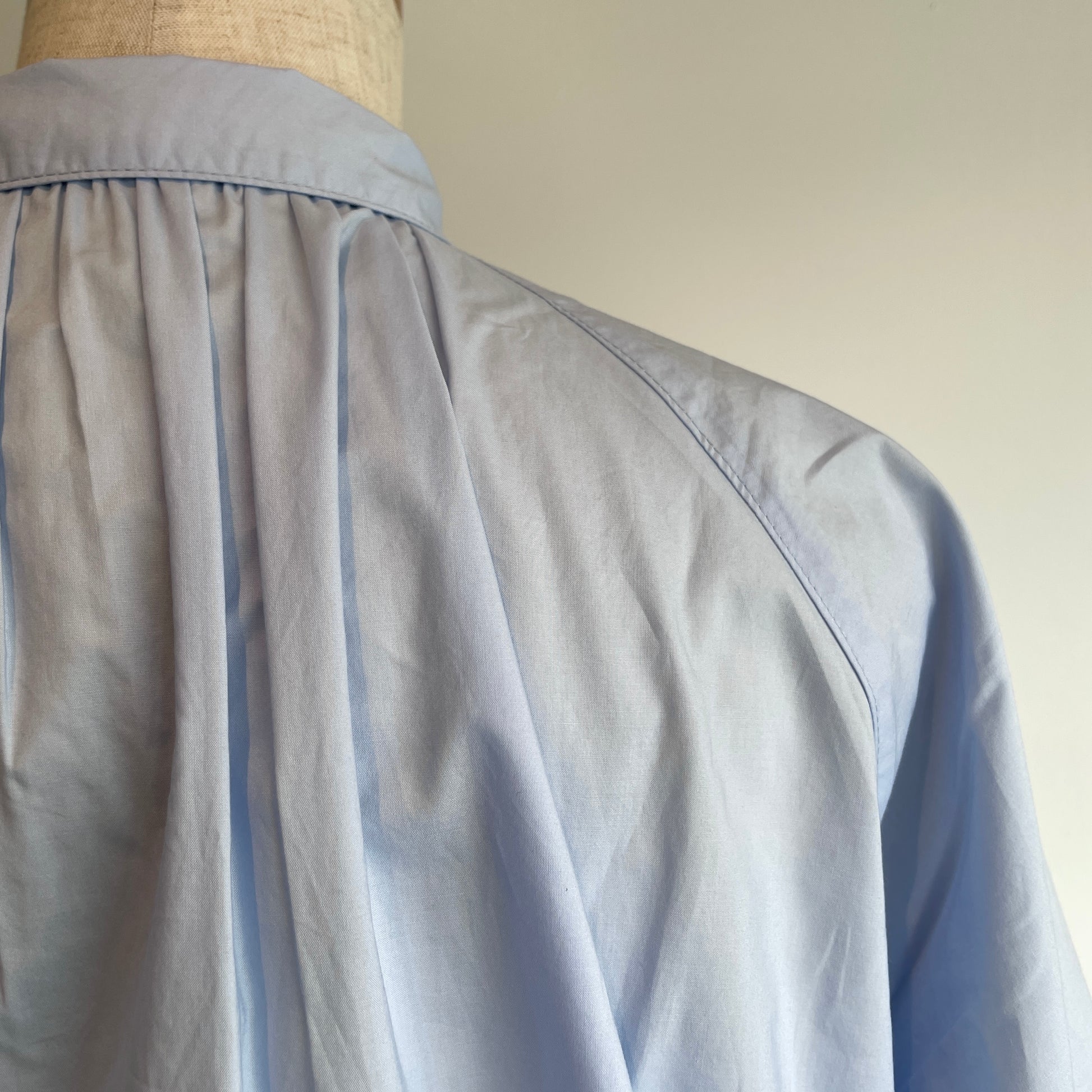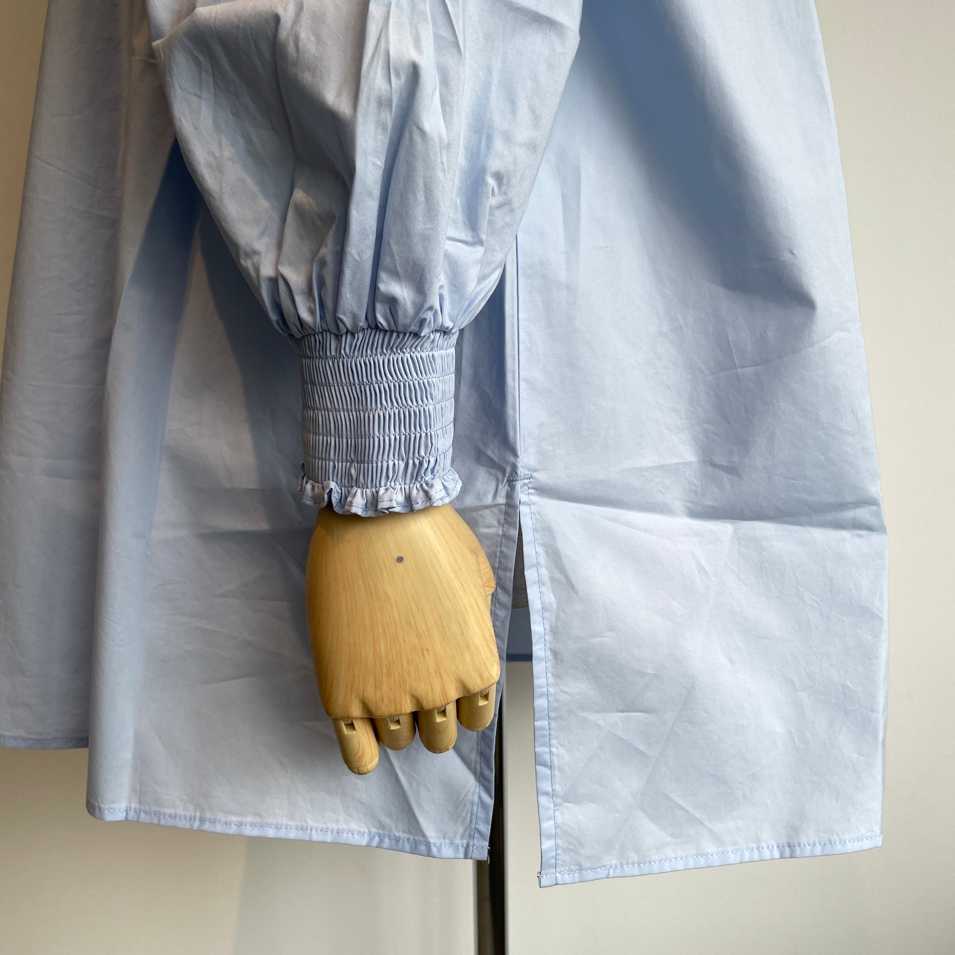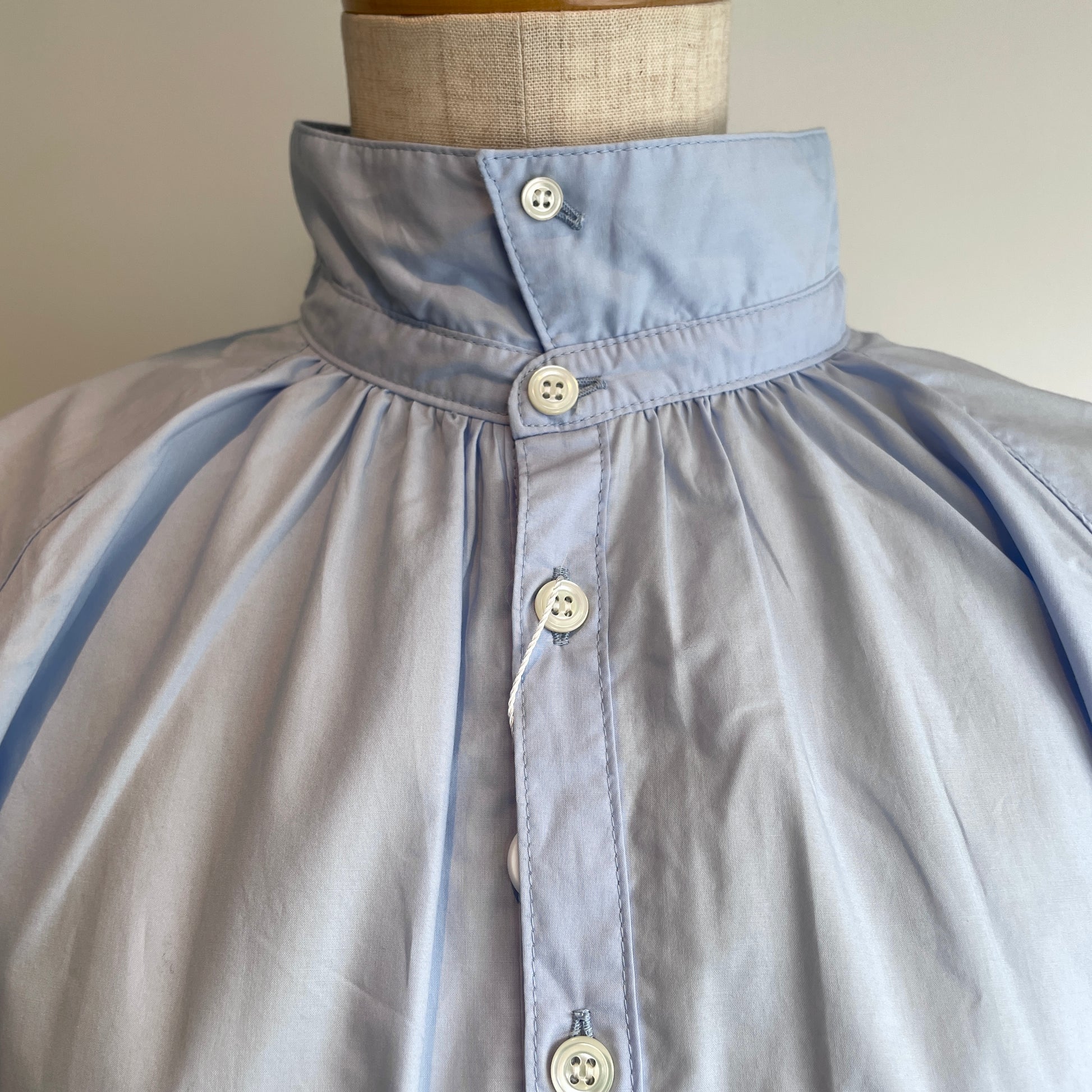 定番素材のシルキーな手触りのオリジナルタイプライターを使用した丈のあるブラウス。