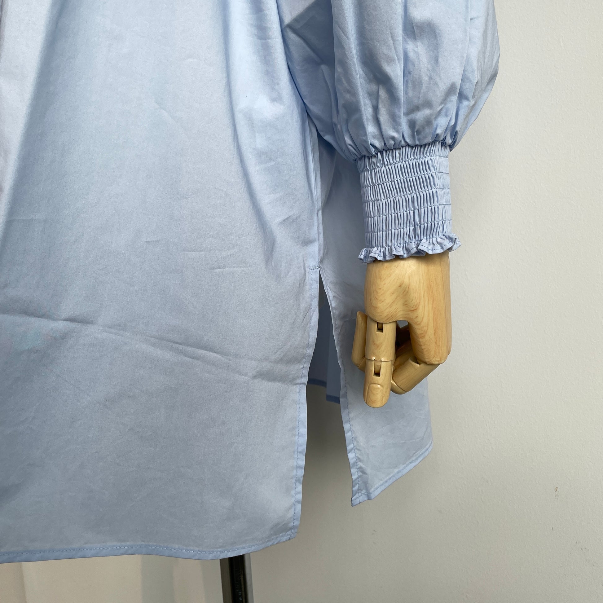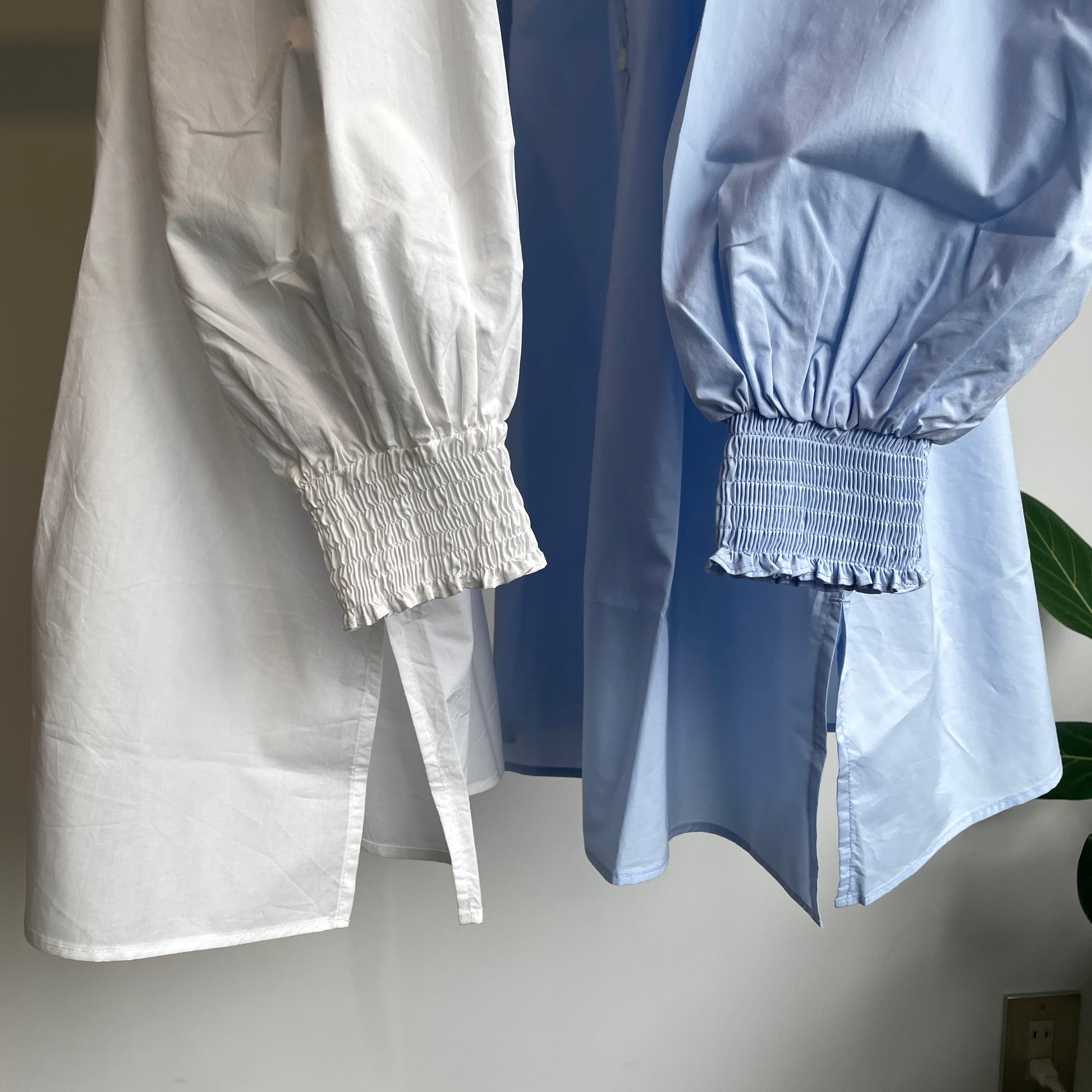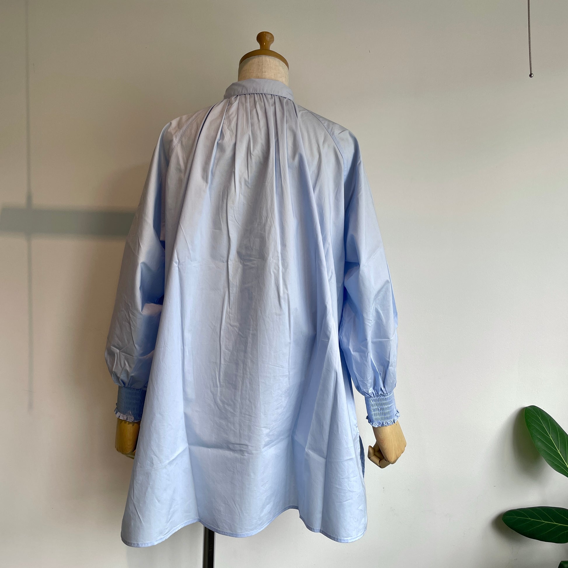 首元の雰囲気でコーディネートを楽しめるブラウスです。
