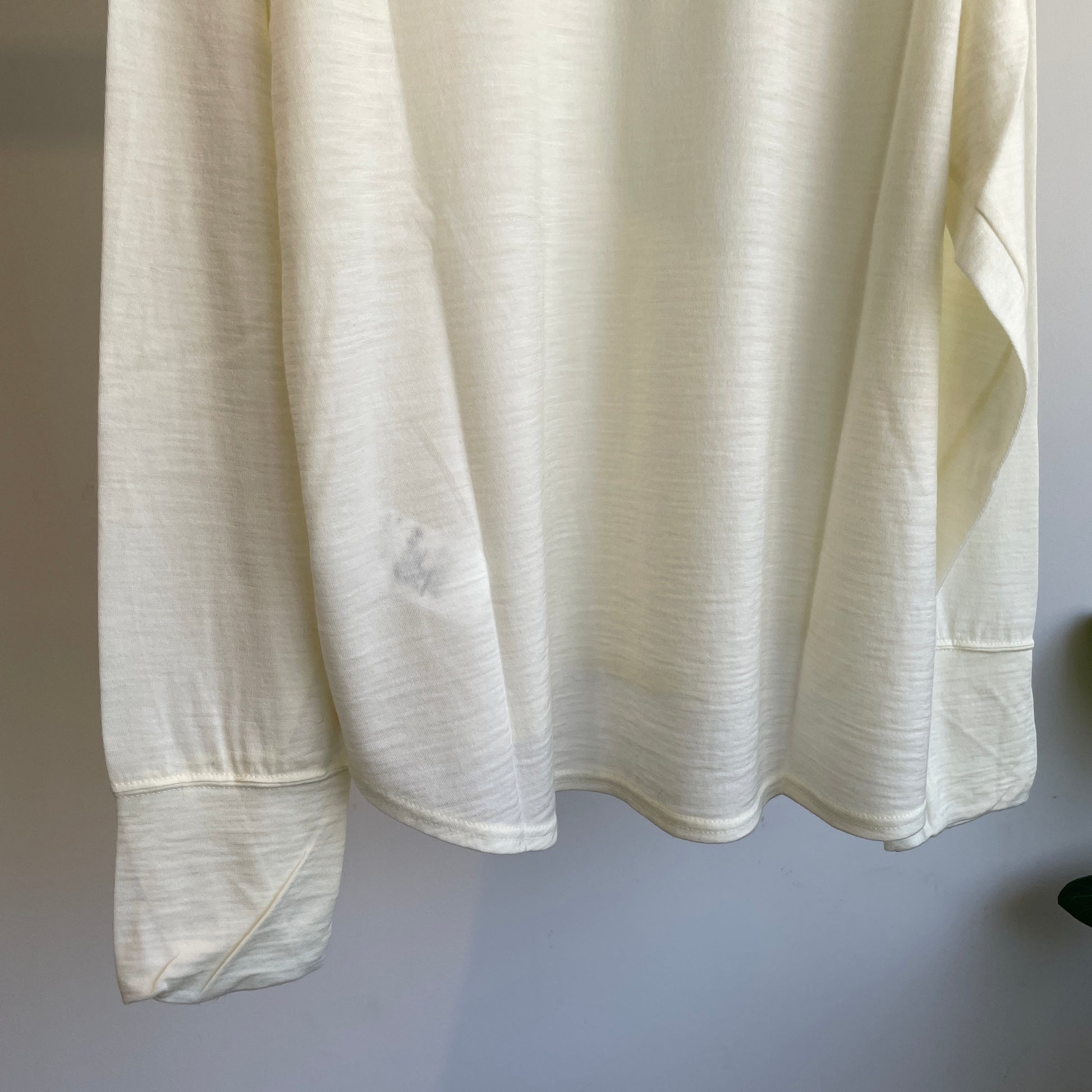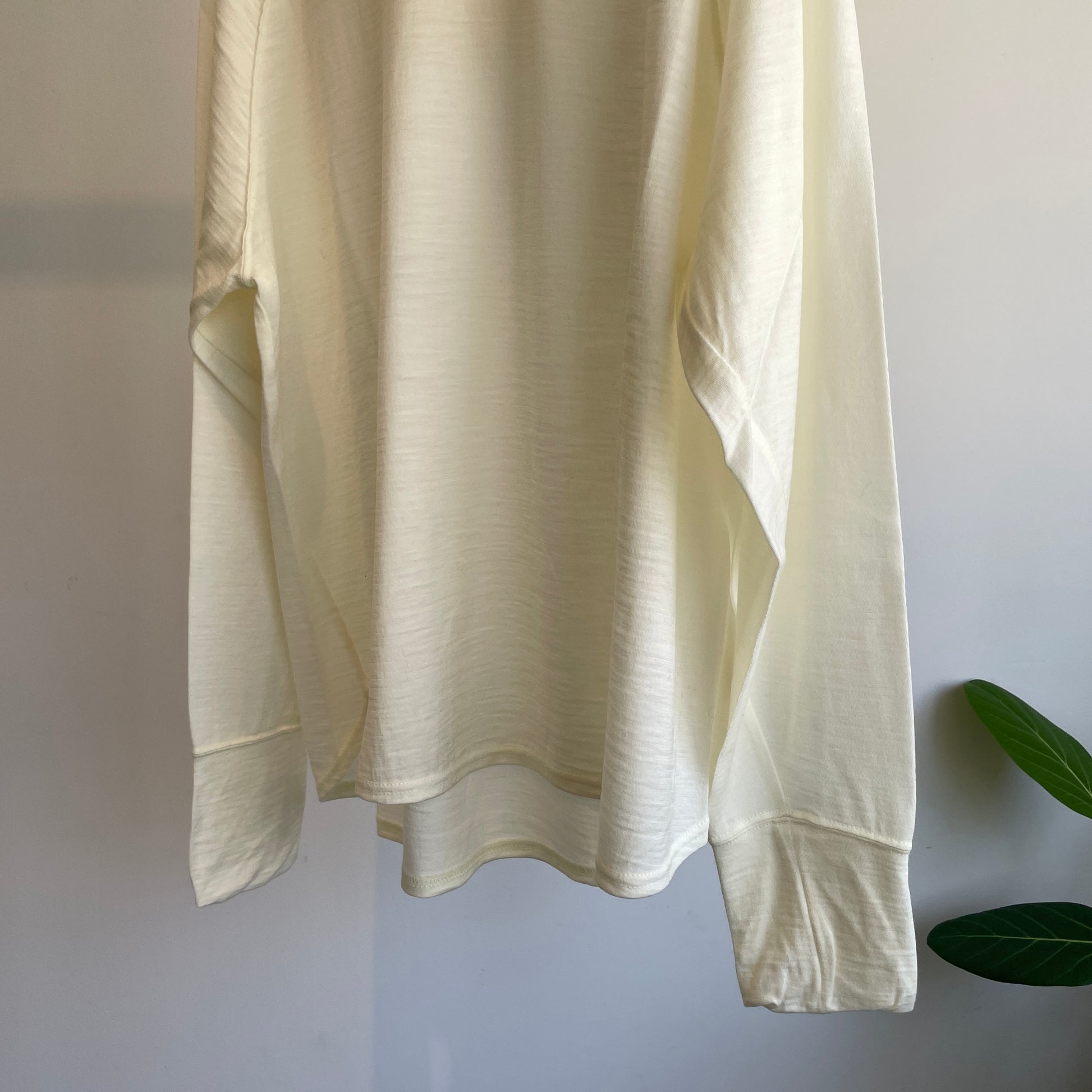 JAMES JERSEYタグ付きの真冬のインナーには最適な素材です。熱伝導率が低いので冬は暖かくインナーで汗をかいても吸湿性に優れています。