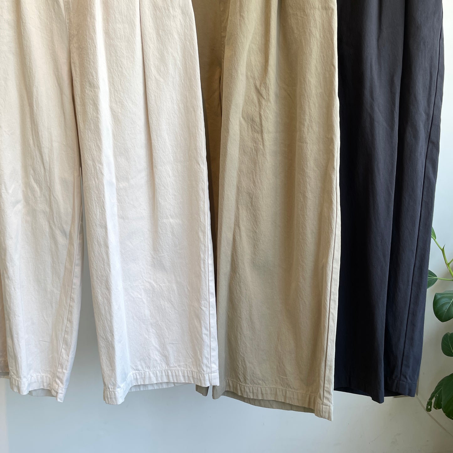 シンプルなトップスと合わせるだけで、季節を問わずさっと馴染んでくれる、yuniの定番パンツです。