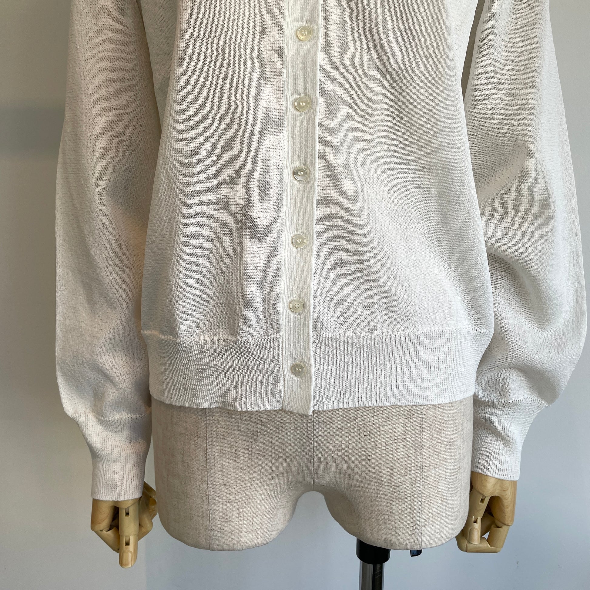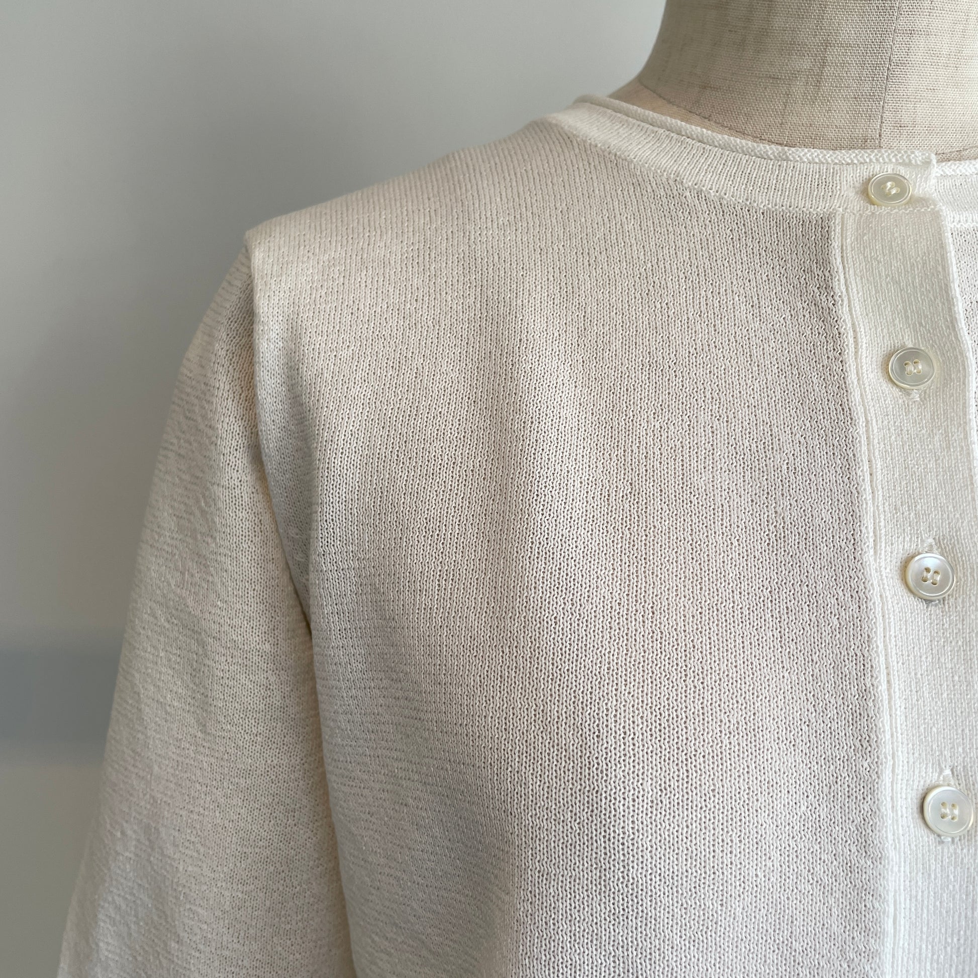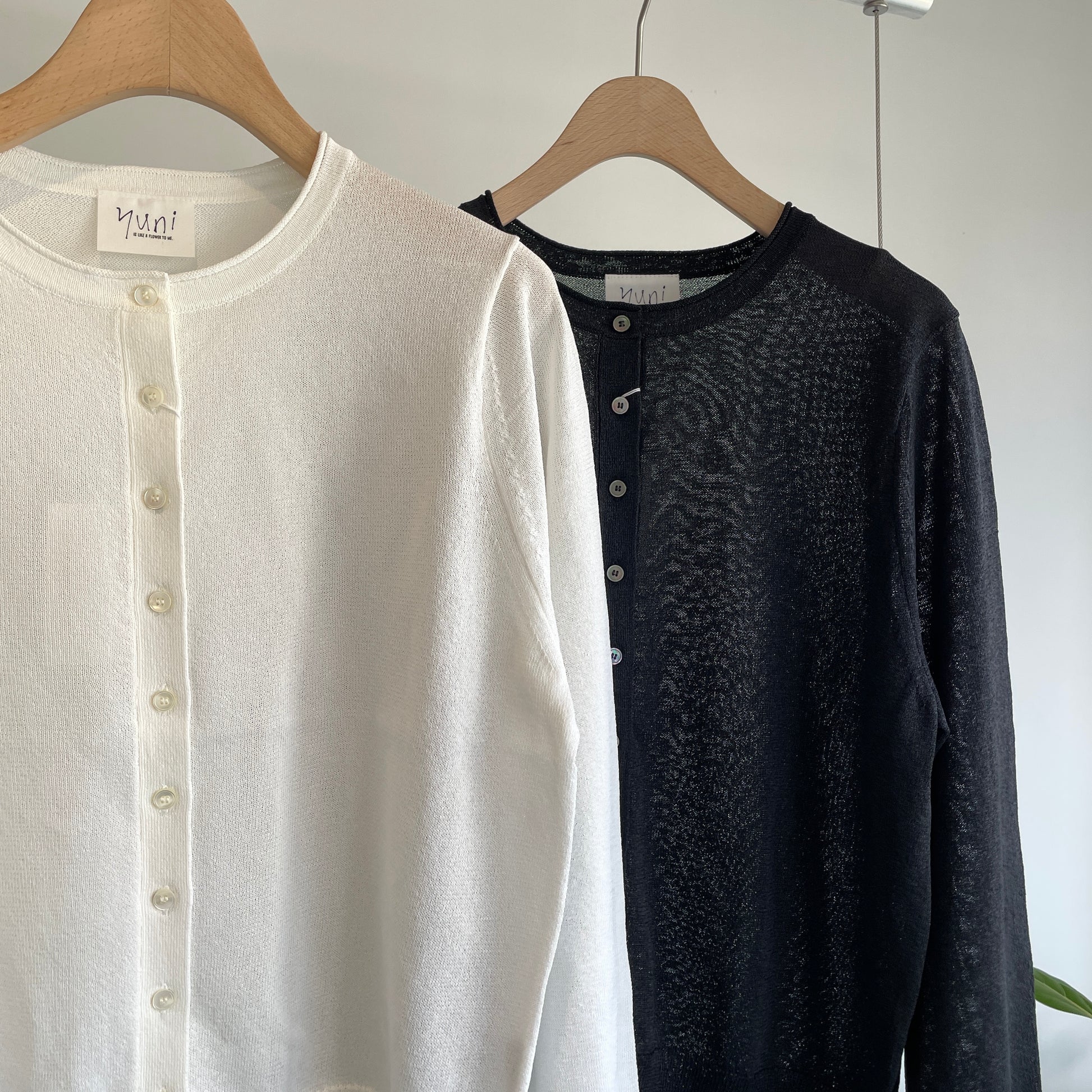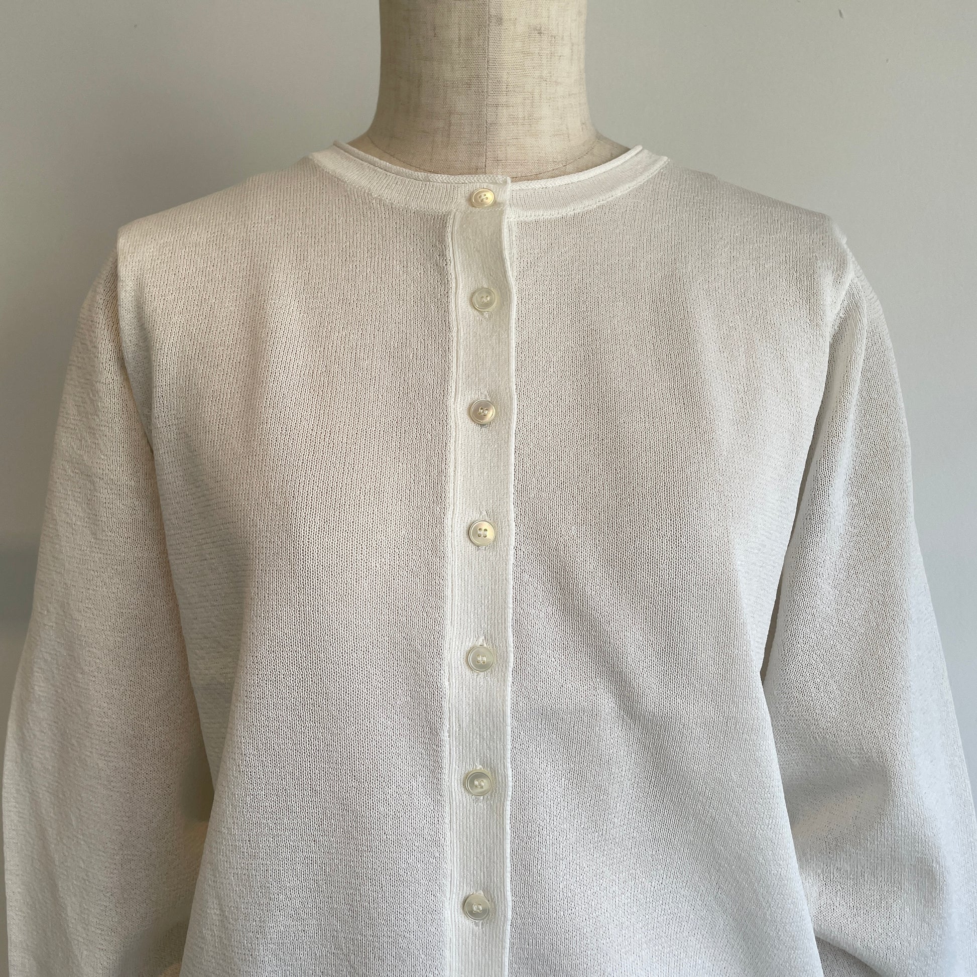 定番の丸首カーディガンも、紙素材が加わることでぐっと表情豊かになりました。