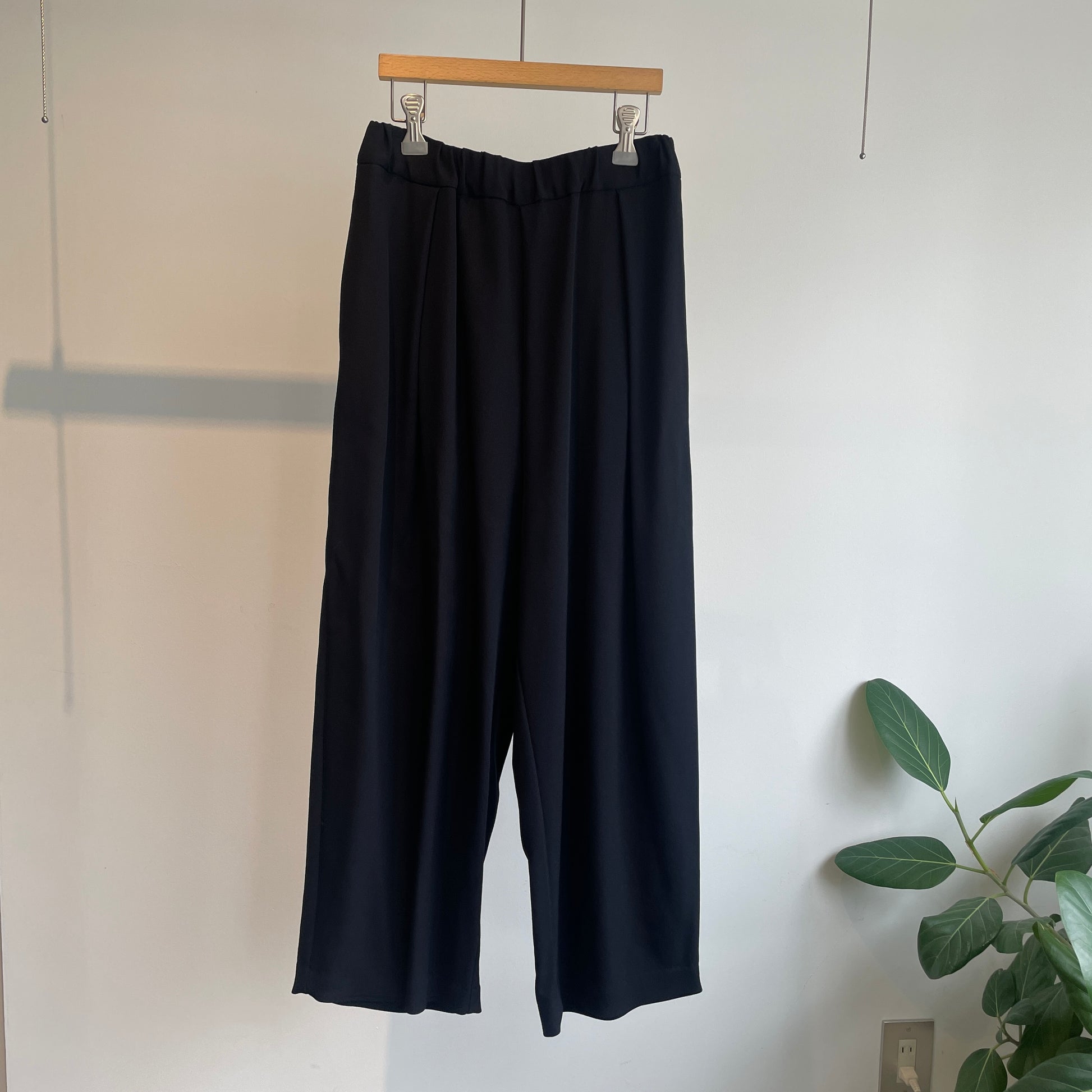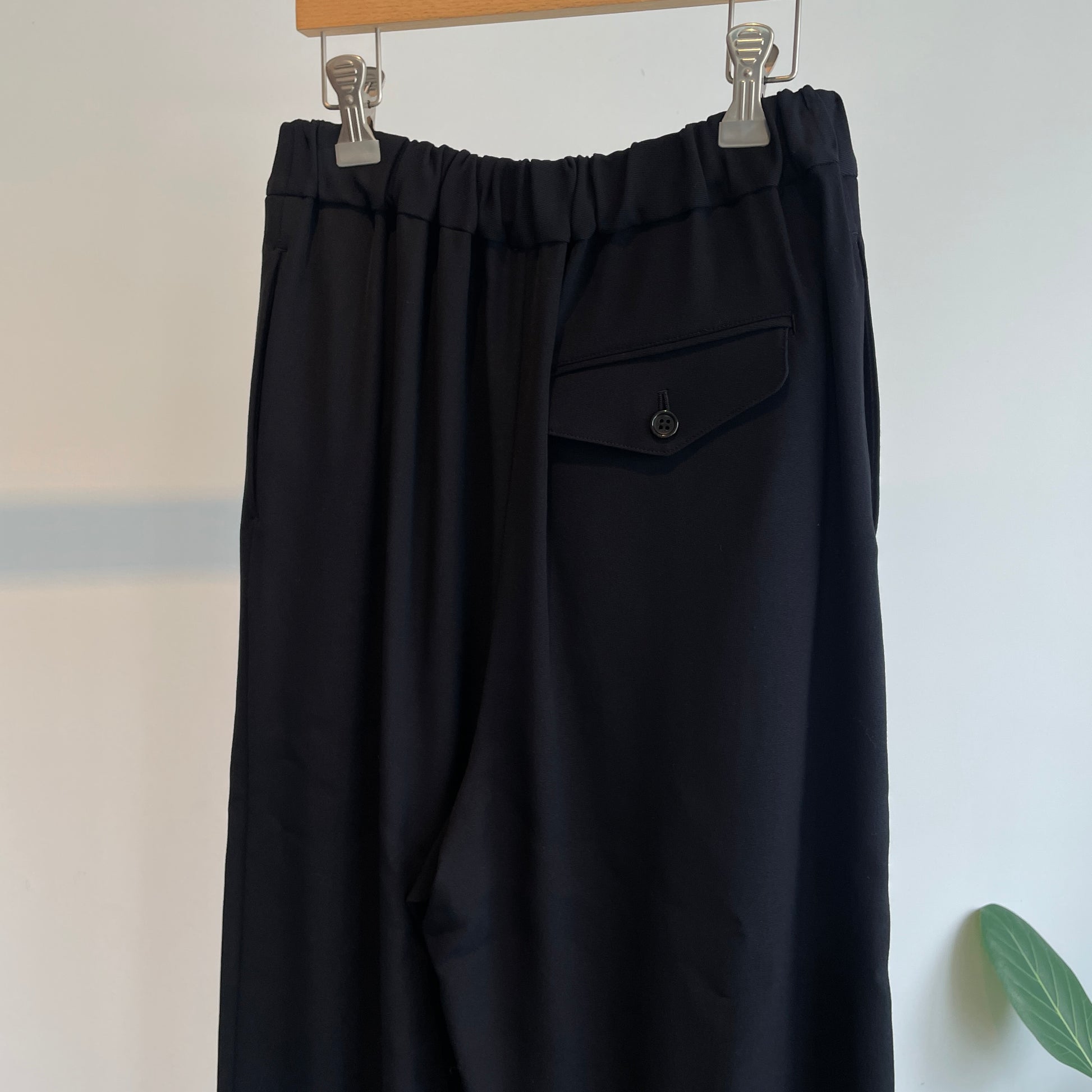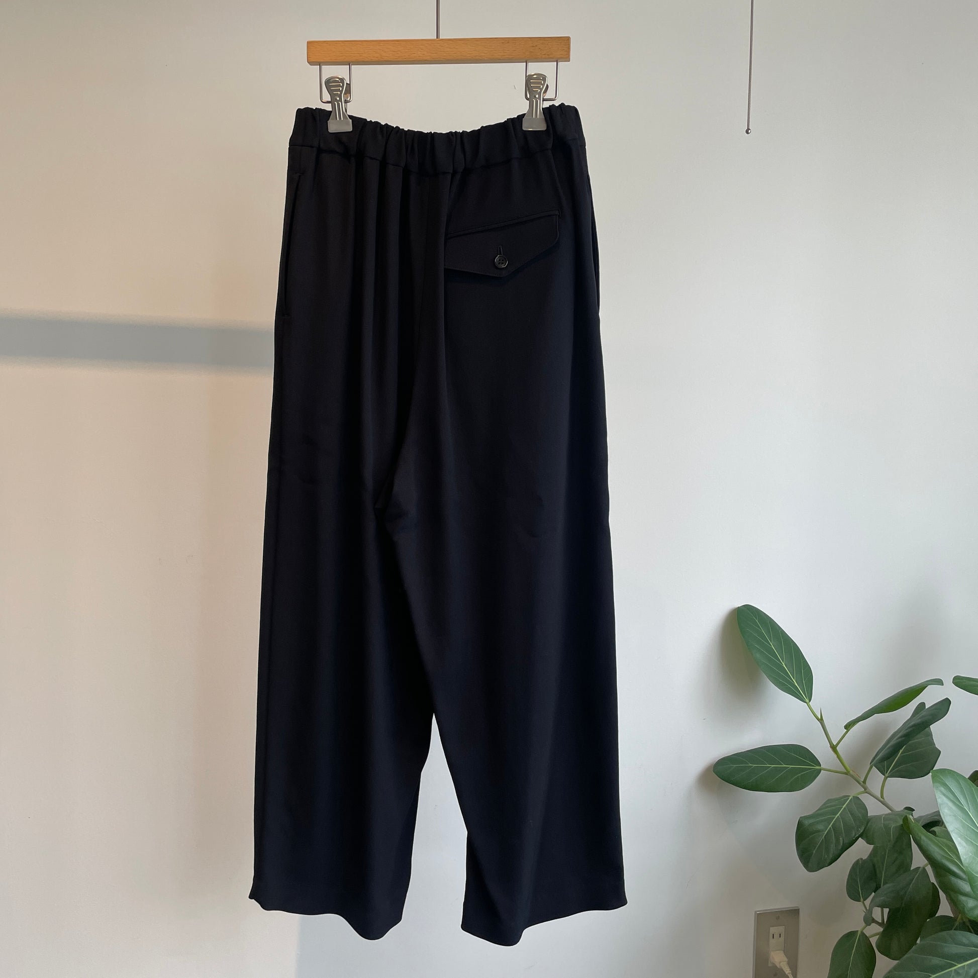 尾州で丁寧に織り上げた、レーヨンウールのゴムタックパンツ。