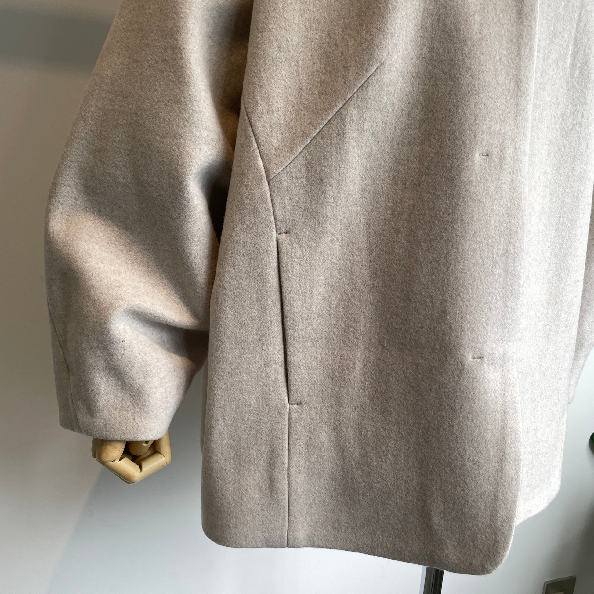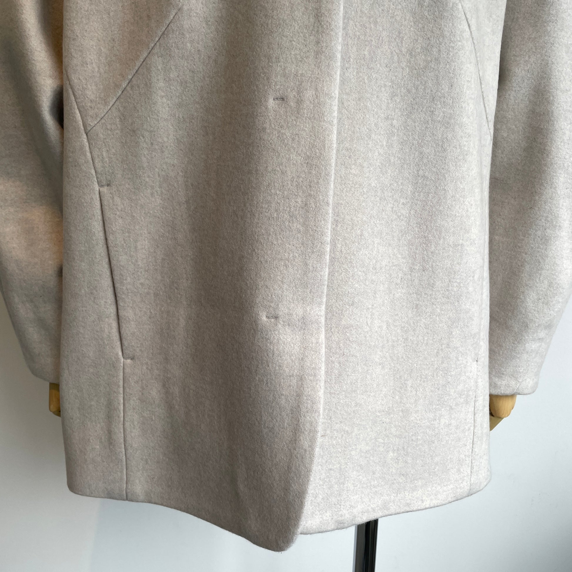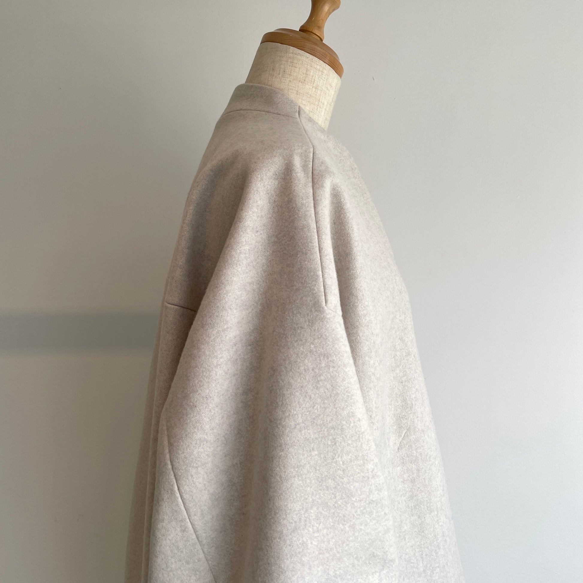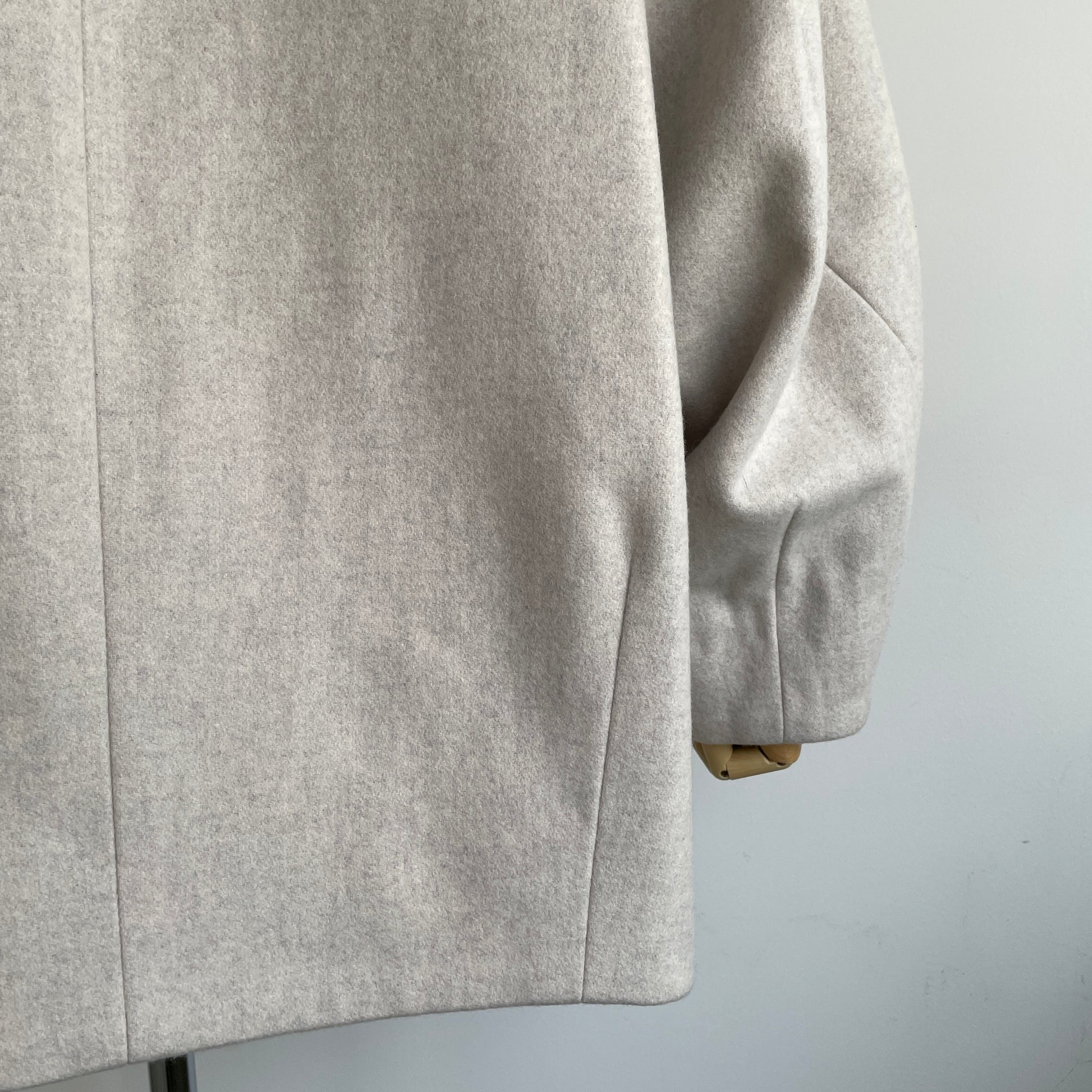 繊維の長いウールを贅沢に使用し、尾州で丁寧に織り上げたyuni定番のスーパー100素材のノーカラーコート 。